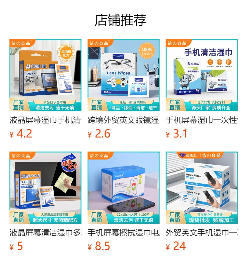 LCD 화면 물티슈 휴대폰 오염 제거 지문 제거 물티슈 휴대용 렌즈 화면 청소 무알콜 물티슈 맞춤 제작스토어 가기