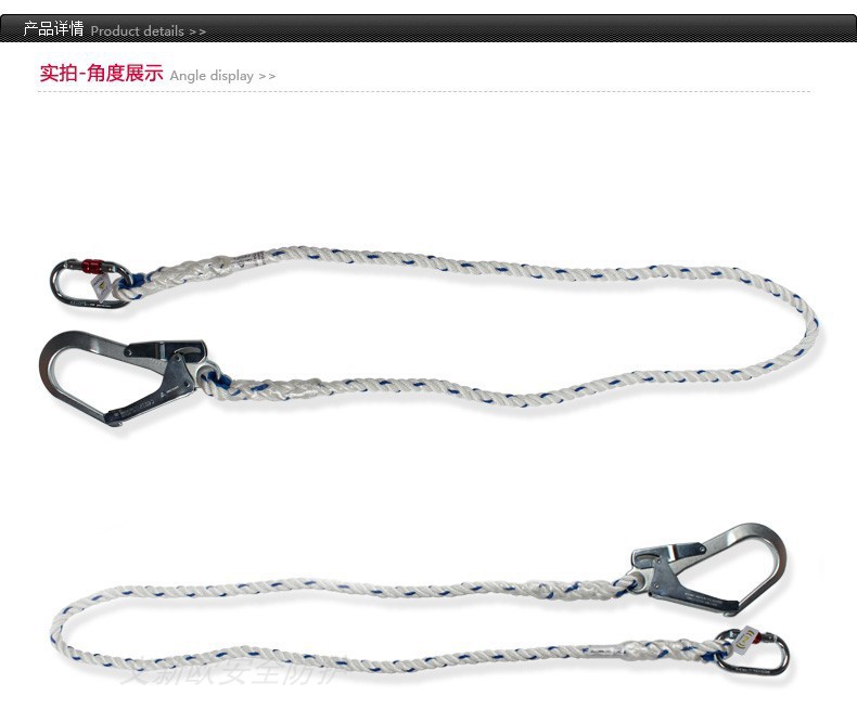 ·三股安全绳+钢制O型钩AM002+钢制大钩AM022 ·绳长1.8米,总长2米