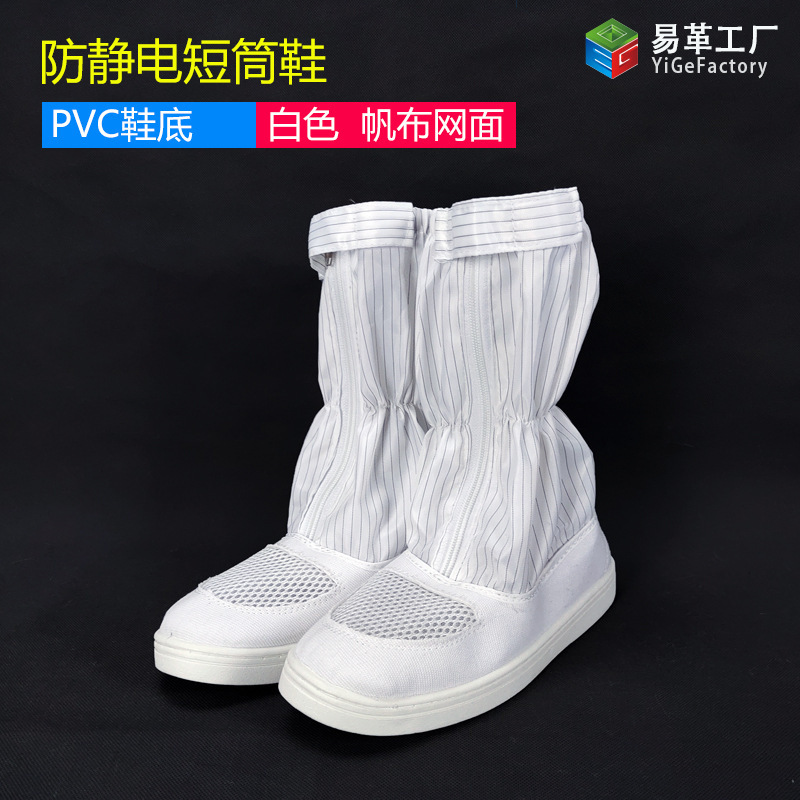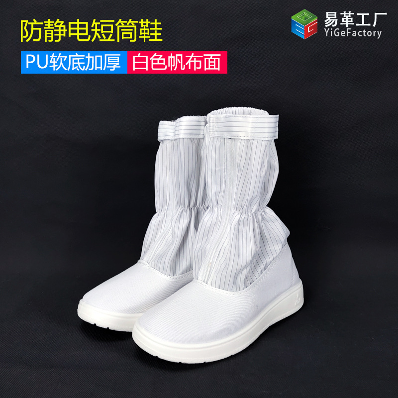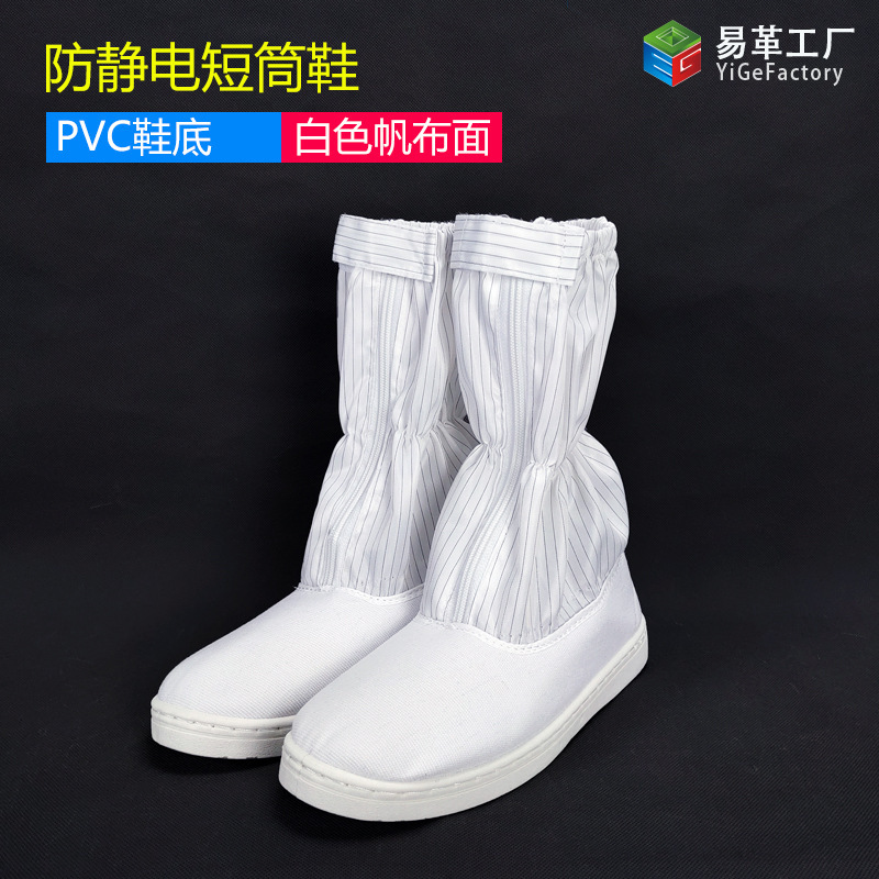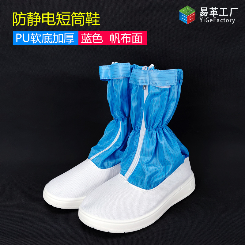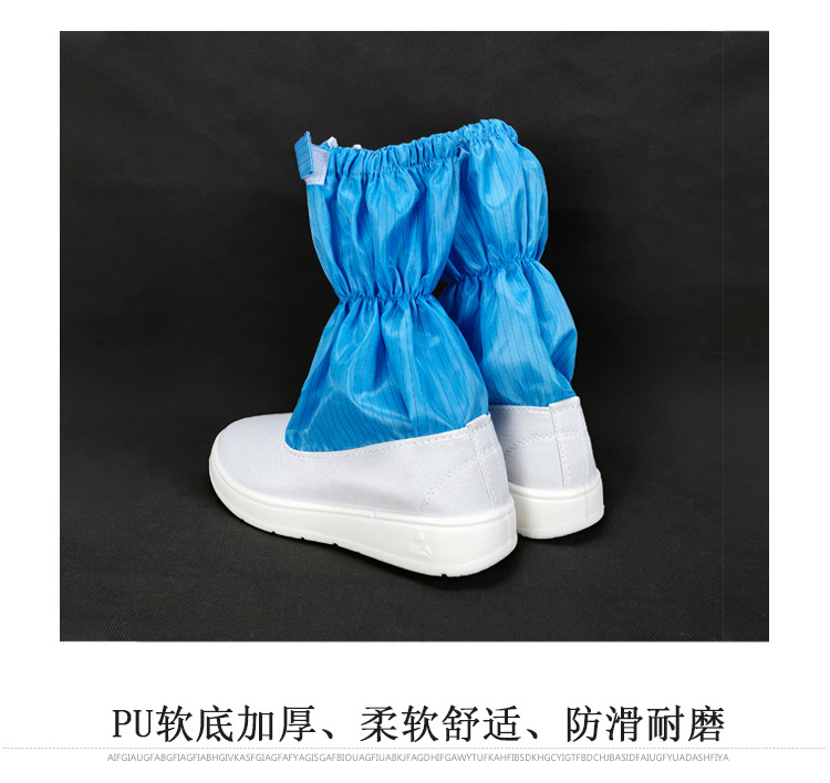 정전기 방지 짧은 배럴 신발 PU PVC 줄무늬 먼지없는 깨끗한 블루 화이트 작업장 보호 작업 높은 긴 배럴 부츠스토어 가기