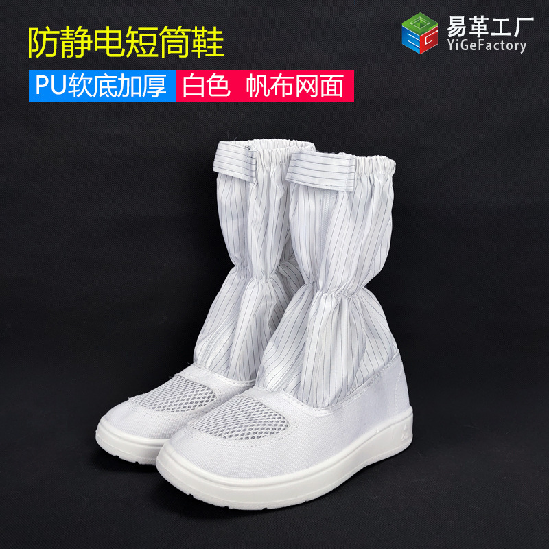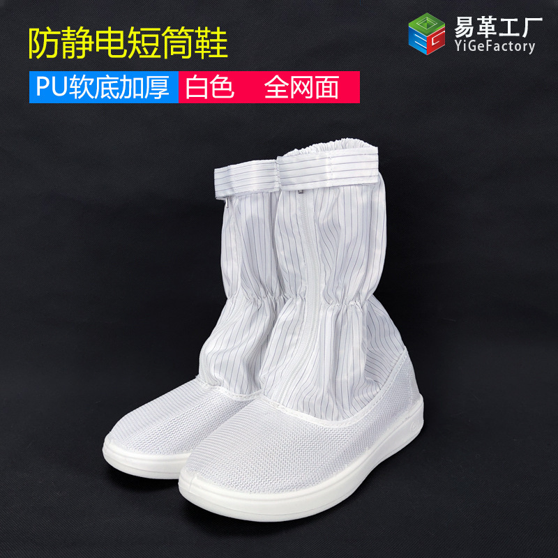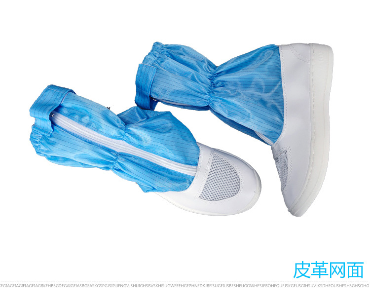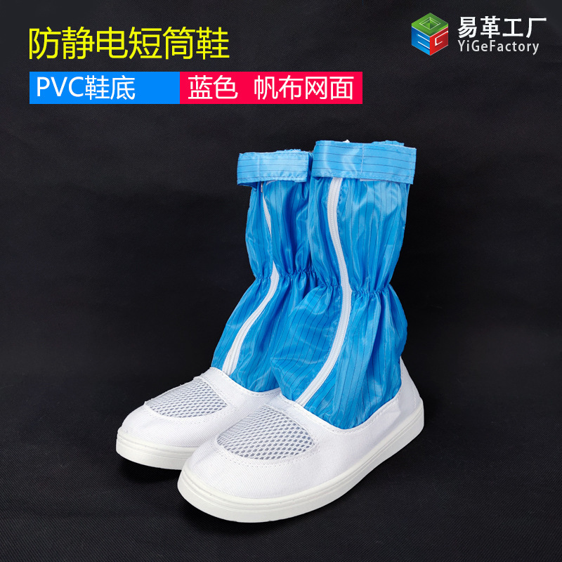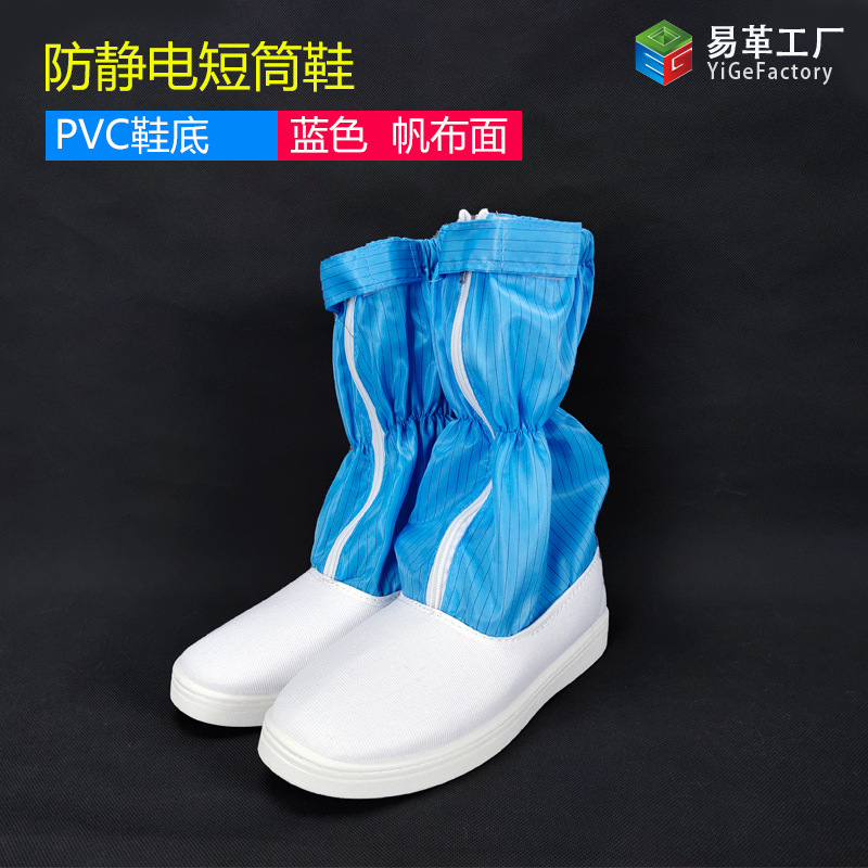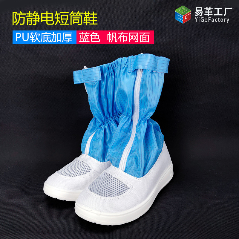 정전기 방지 짧은 배럴 신발 PU PVC 줄무늬 먼지없는 깨끗한 블루 화이트 작업장 보호 작업 높은 긴 배럴 부츠