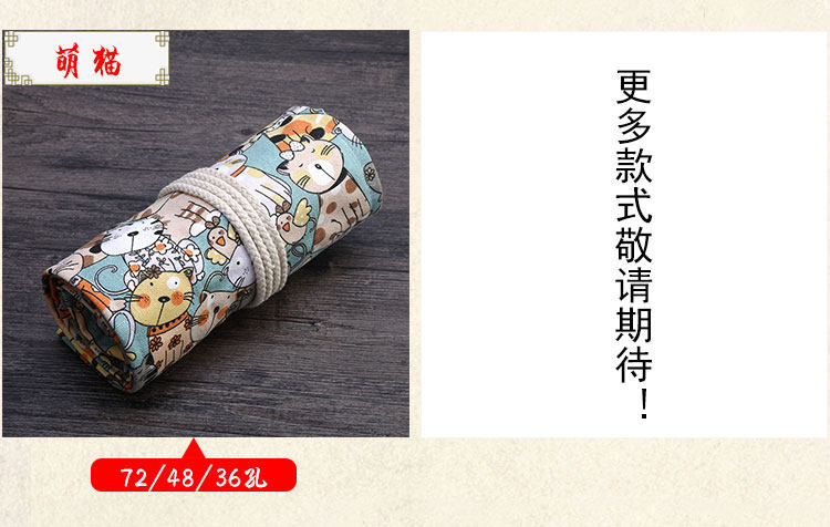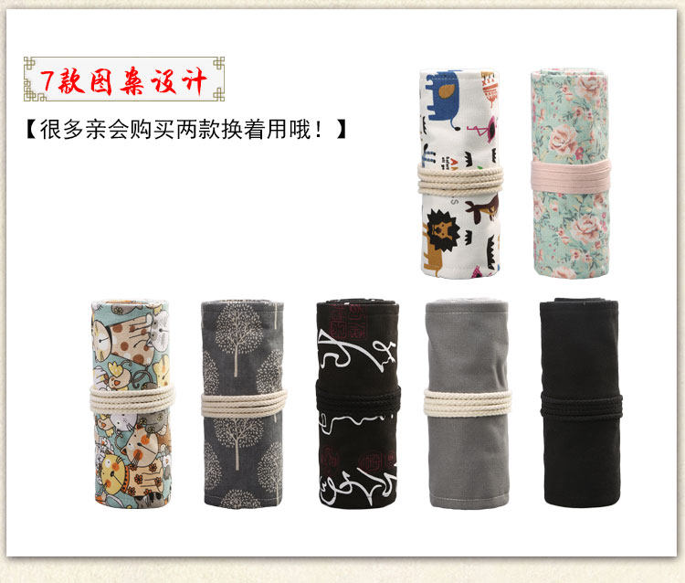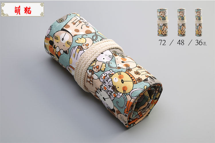 수제 캔버스 펜 커튼 36/48/72 홀 대용량 틈새 고급 펜 가방 학생 스케치 문구 보관 가방스토어 가기