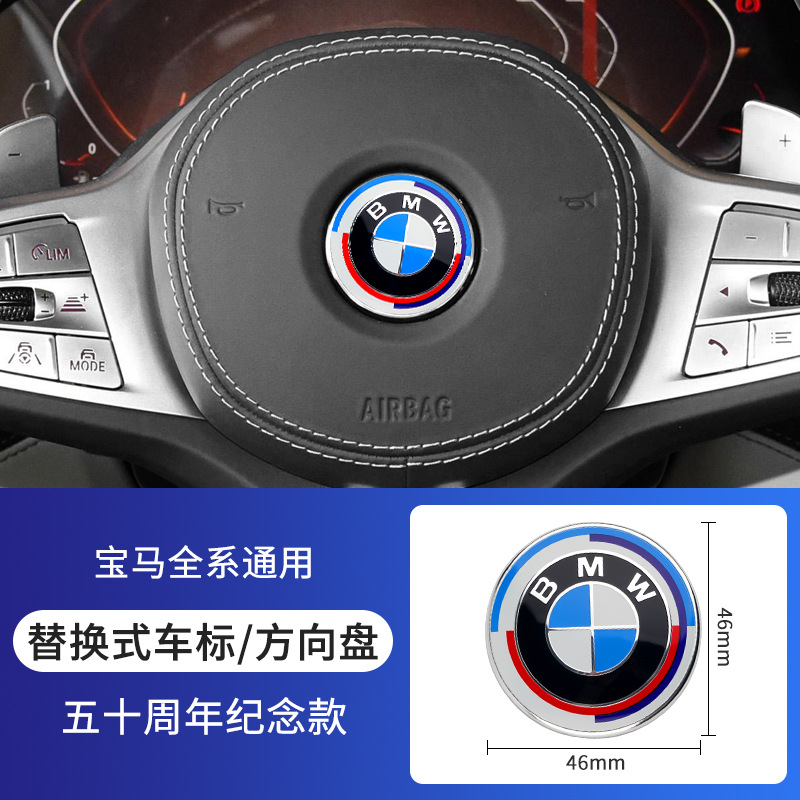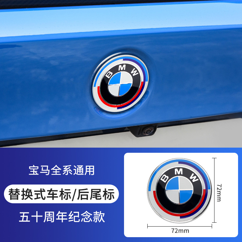 BMW 50 주년 기념 자동차 로고 X1X3X5X6 후드 로고 휠 허브 센터 커버 로고 전면 및 후면 자동차 로고에 적합스토어 가기