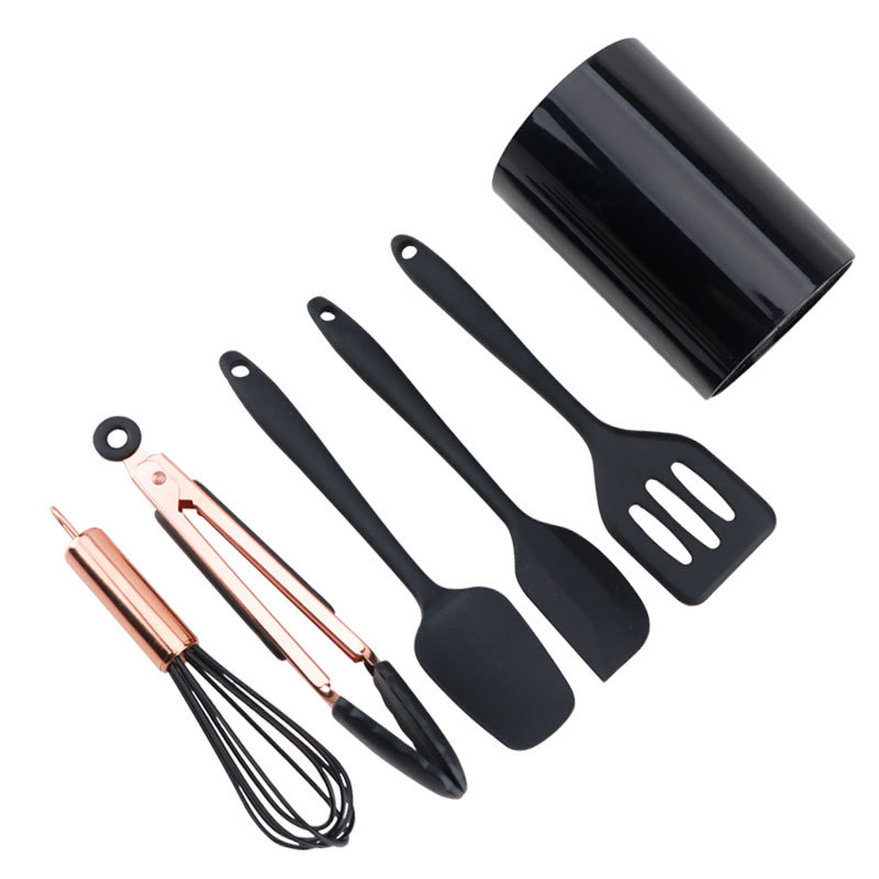 로즈 골드 핸들 실리콘 어린이 베이킹 도구 5 개 세트 미니 피자 스크레이퍼 계란 털기 주방 용품 세트