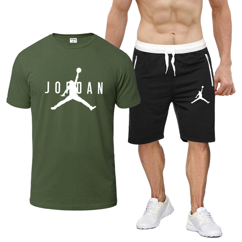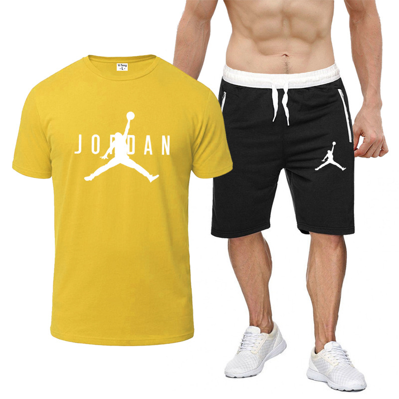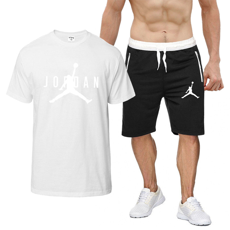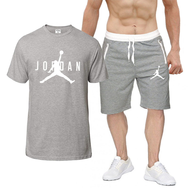 2020 새로운 국경 패션 남성 캐주얼 반팔 티셔츠 세트 여름면 티셔츠 남성 스포츠 반바지 세트