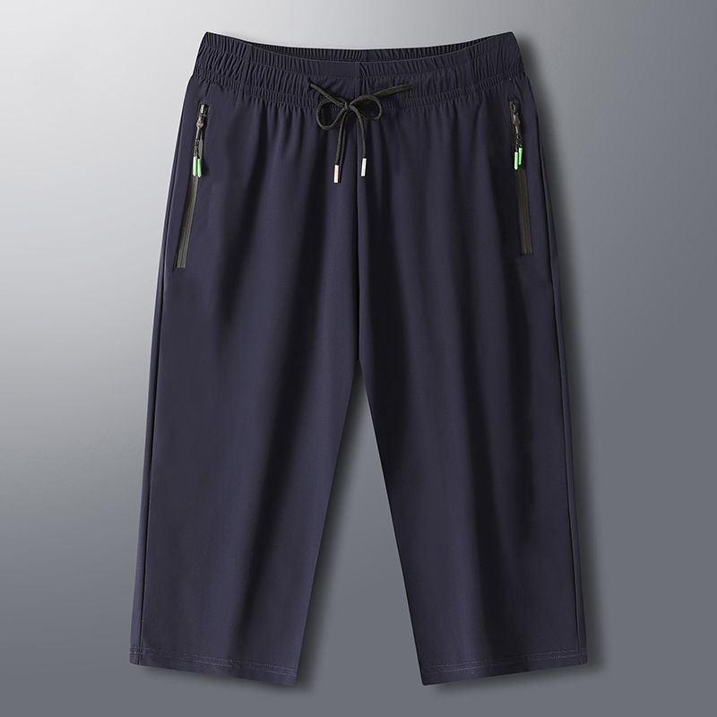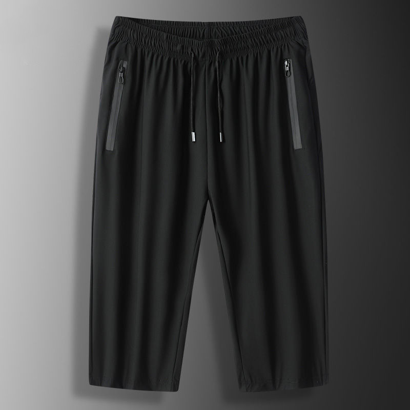 여름 캐주얼 반바지 남성용 아이스 실크 카프리 바지 남성용 스트레이트 루즈한 스포츠 바지 남성용 미디엄 팬츠 대형 바지 비치 팬츠