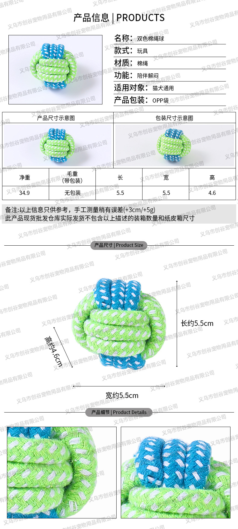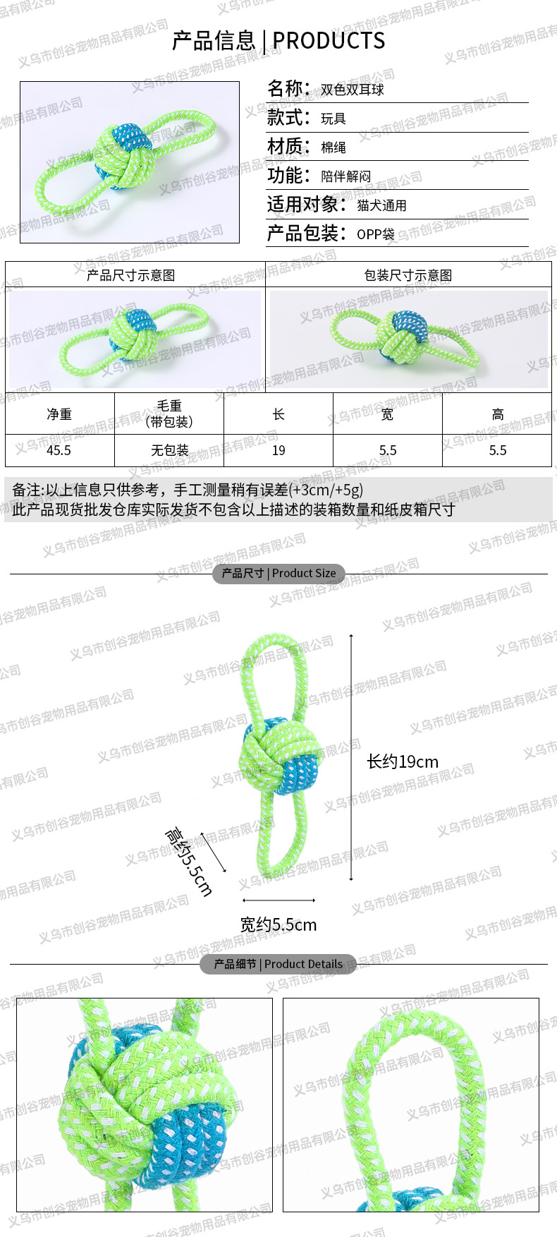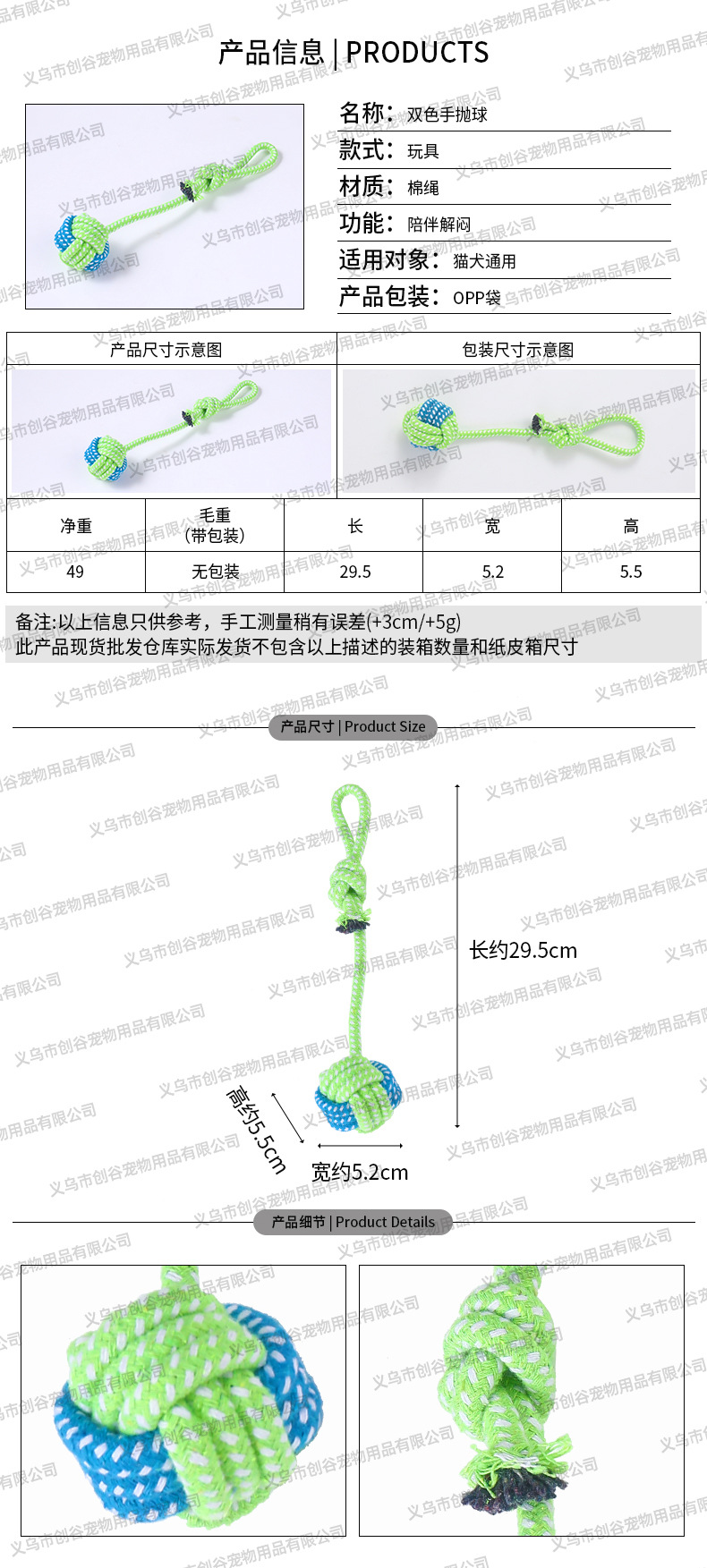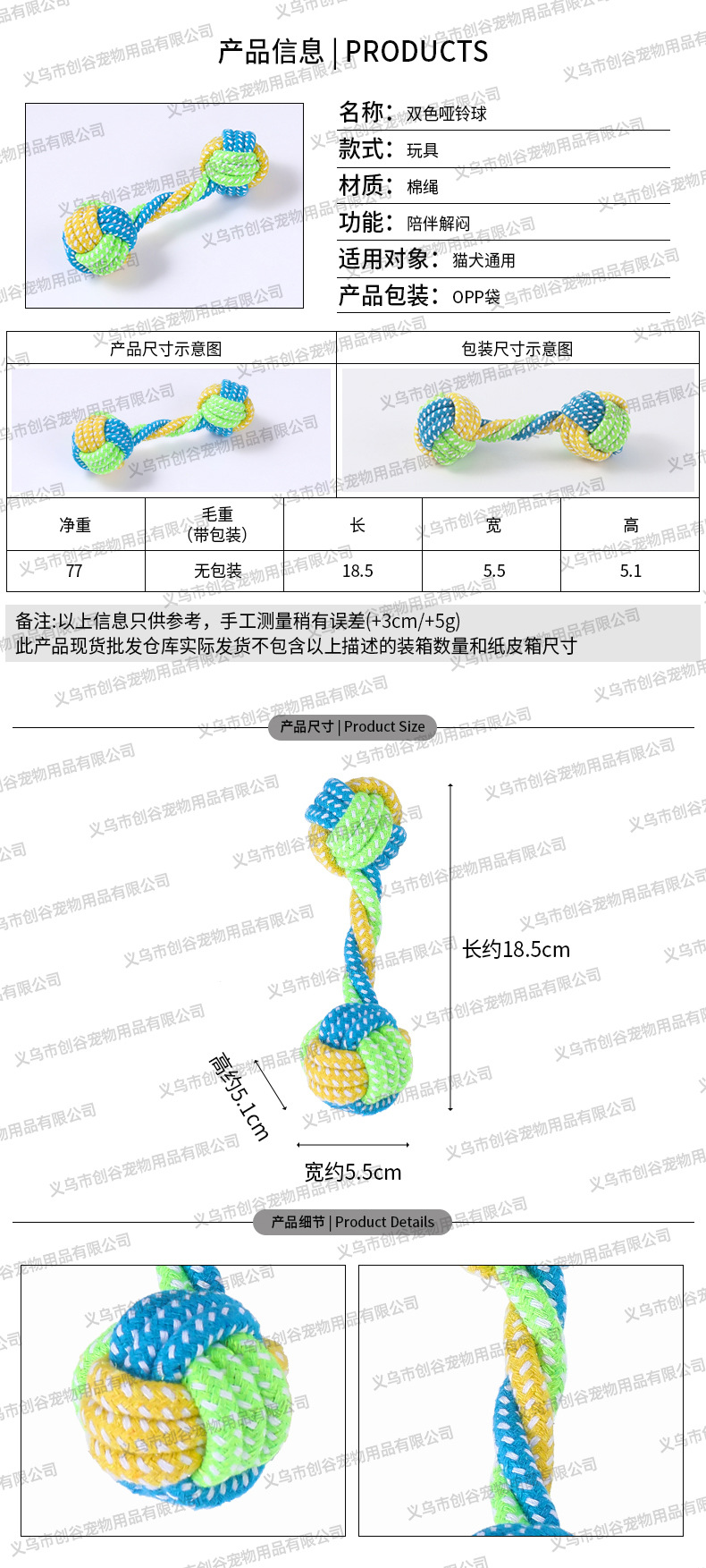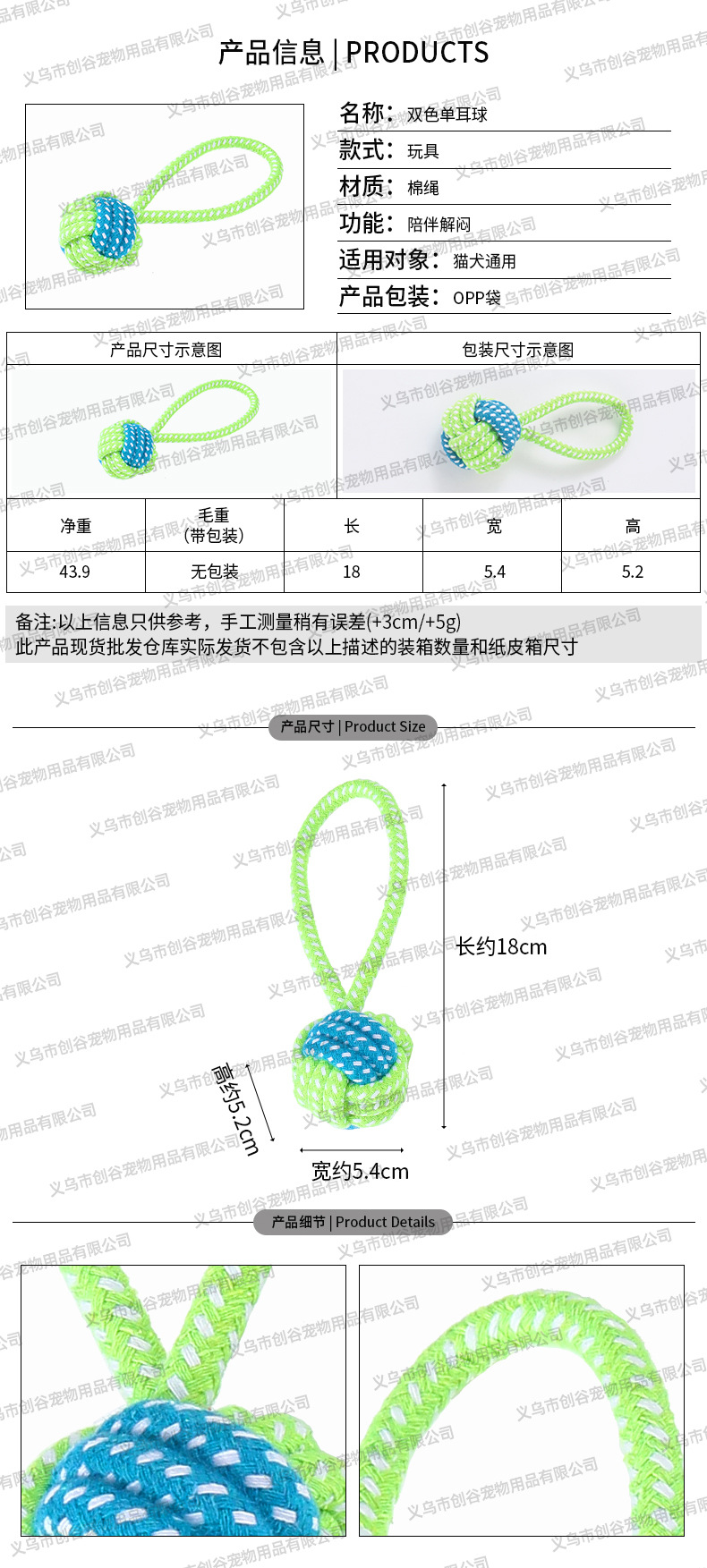 • 이중 섹션 코튼 로프 대형 - 임의 색상