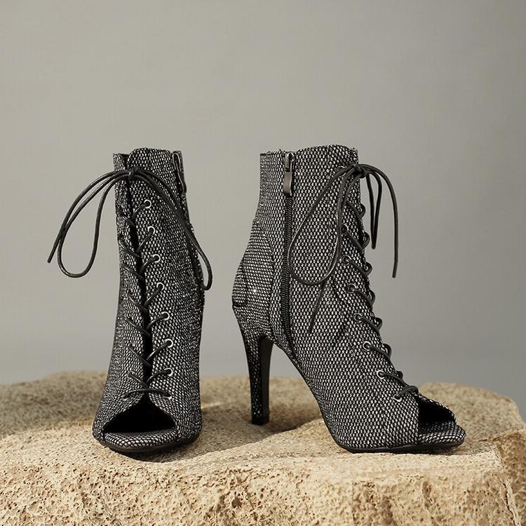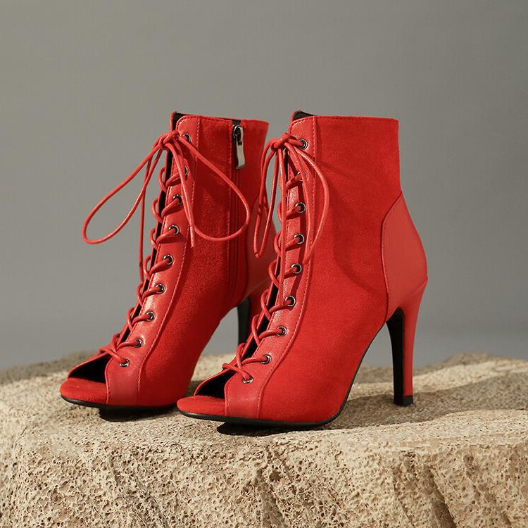 물고기 입 샌들 여자의 봄과 여름 스틸레토 중공 짧은 부츠 레이스 업 재즈 댄스 댄스 하이힐 신발 플러스 사이즈 샌들
