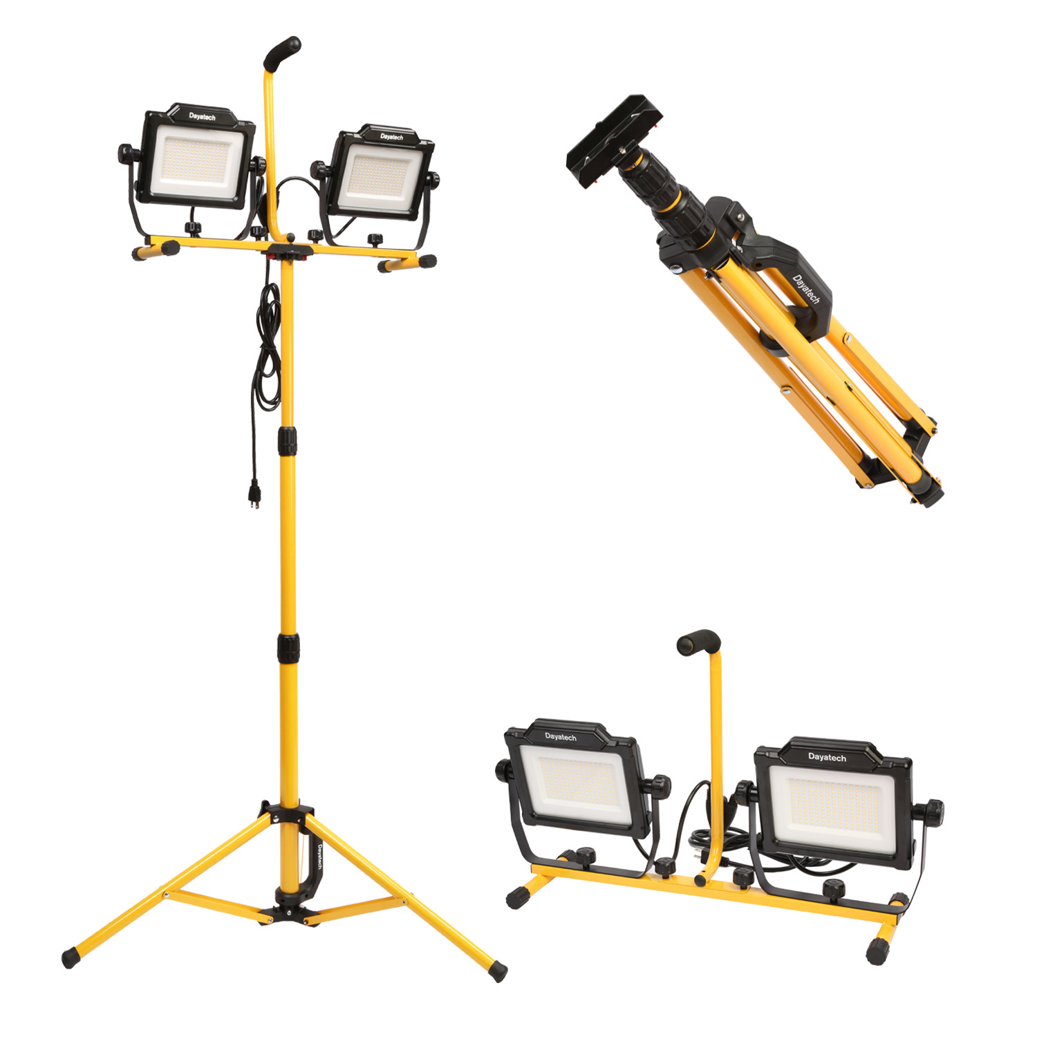 DAYATECH 超大功率,超亮:180W能做到20000LM,色温3500-6500K。 拥有快装接头的便携提手三脚架,LED双头工作灯独立开关按钮,5000lm,10000lm,15000lm,20000lm四档光可调节。适用与户内装修、修理,户外露营、施工。