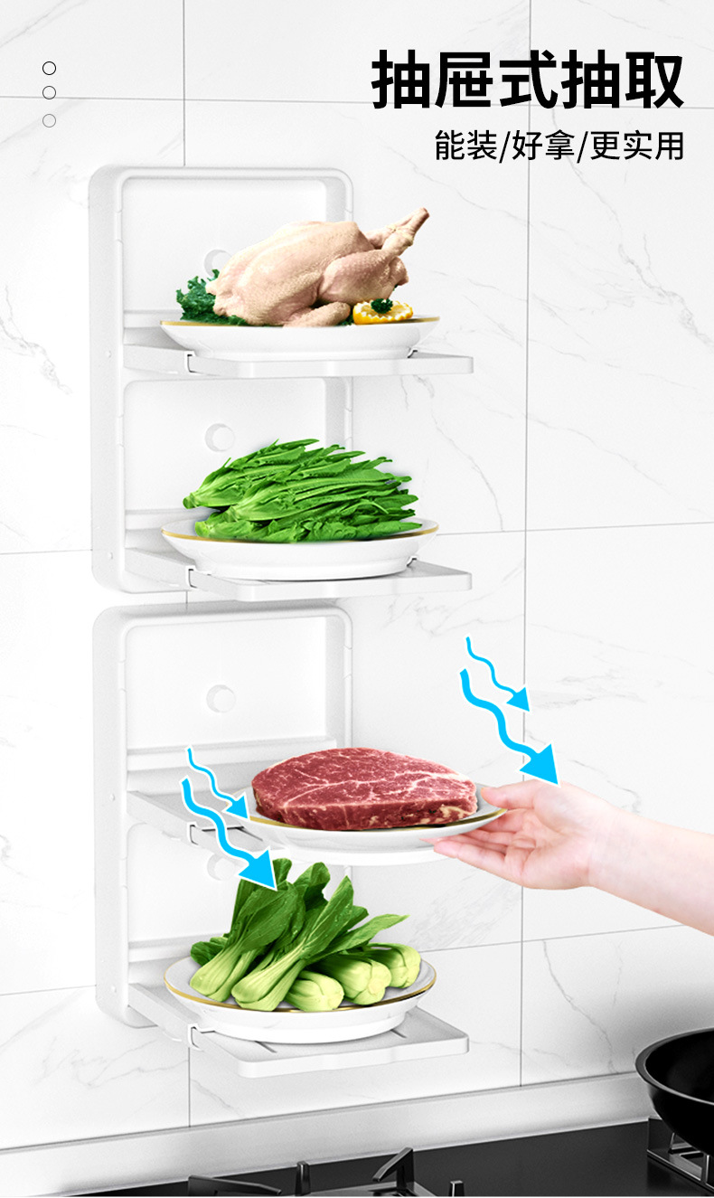 주방 식품 보관 랙 개폐식 식품 선반 벽걸이 플라스틱 식품 랙 접이식 식품 플레이트 보관 랙스토어 가기