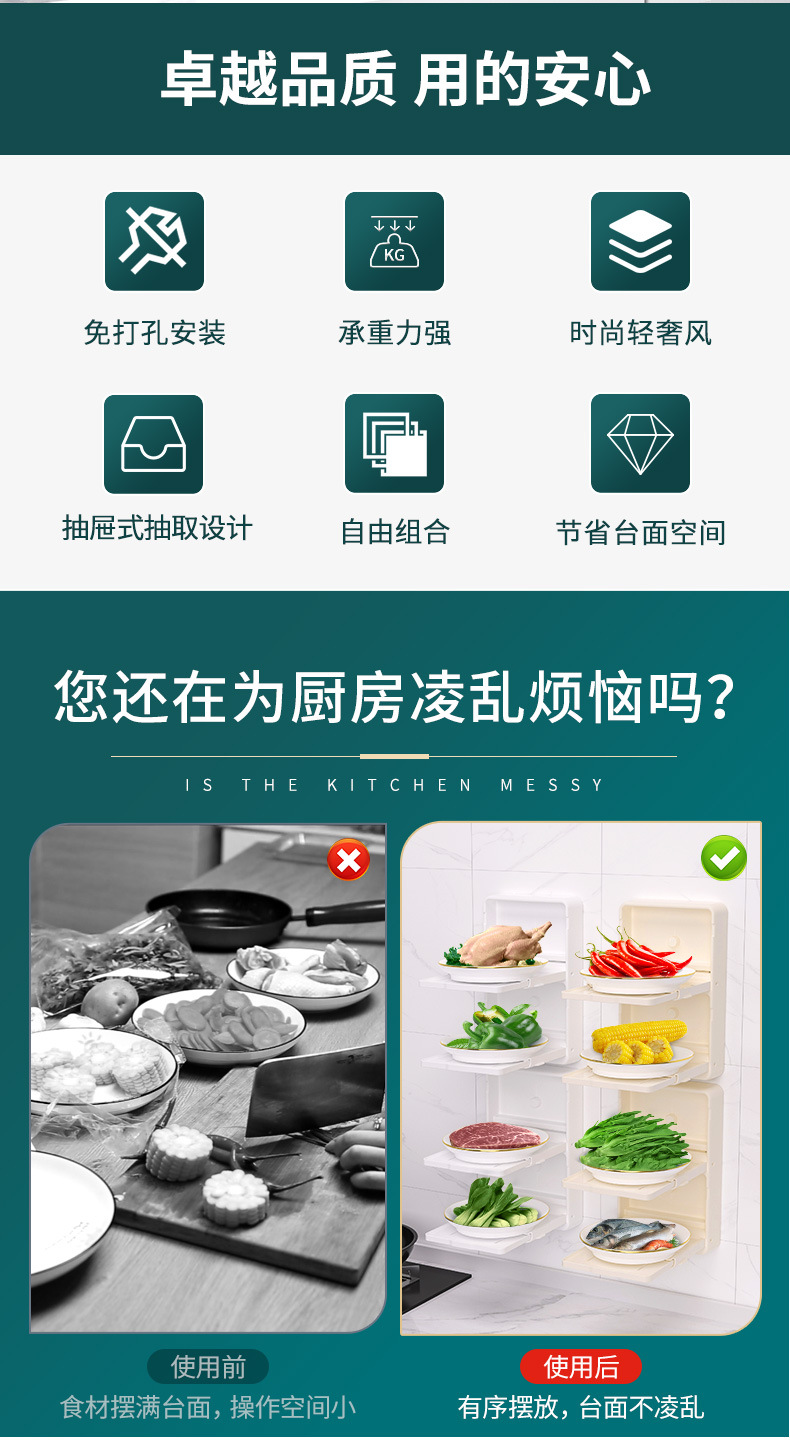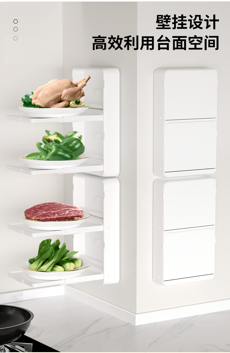주방 식품 보관 랙 개폐식 식품 선반 벽걸이 플라스틱 식품 랙 접이식 식품 플레이트 보관 랙