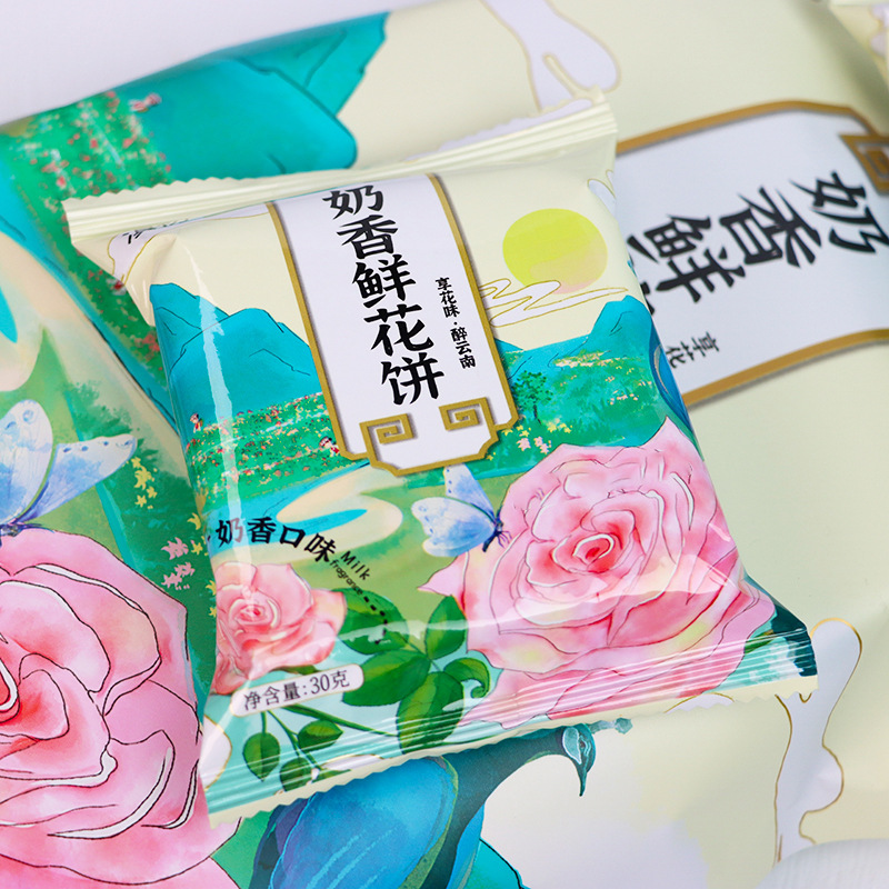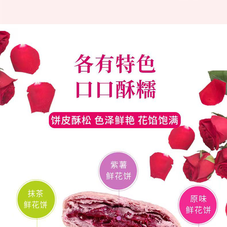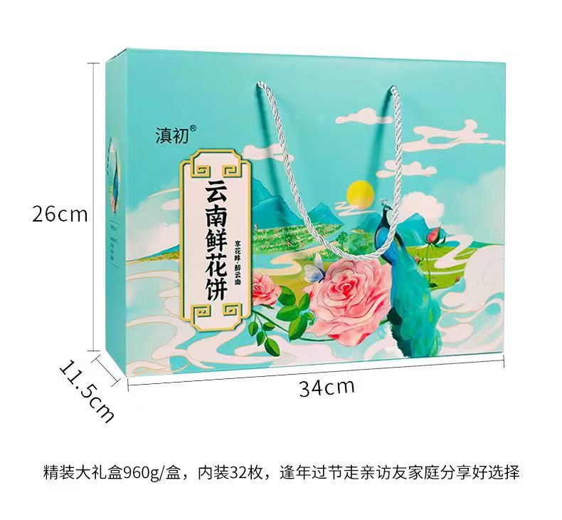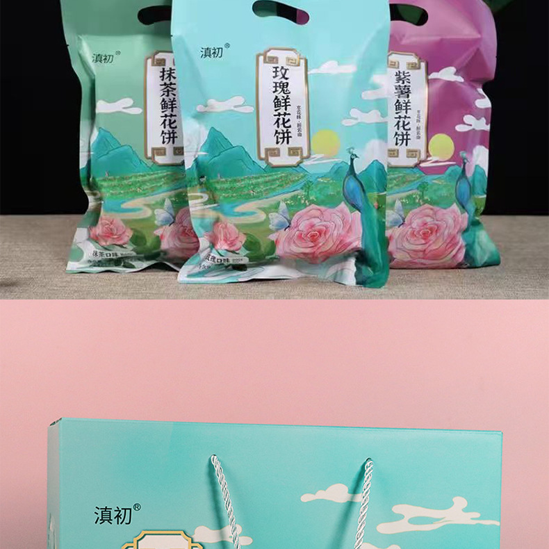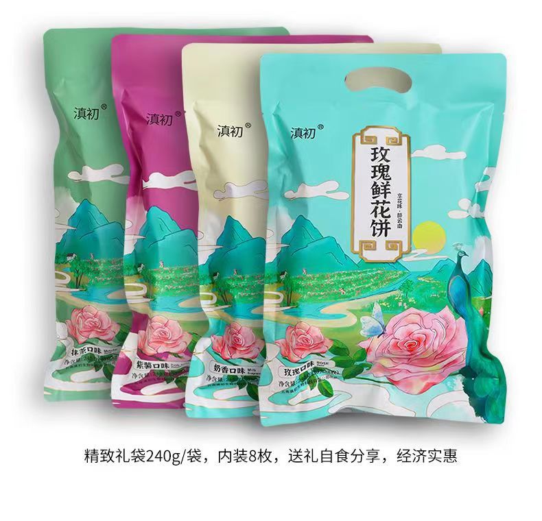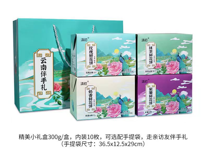 2、鲜花饼批发、零售、一件代发,有袋装240g(8枚*30g)、小礼盒装300g(10枚*30g)、大礼盒装960g(32枚*30g)。其中,小礼盒装可配手提袋,尺寸:36.5cm*12.5cm*29.5cm(1个手提袋可装4盒300g)。鲜花饼箱规:240g袋装,36袋/箱;30g散装,416枚/箱(点击此处可跳转批发)。【加量升级款】32克/枚点此链接跳转 云南鲜花饼有4种口味:玫瑰原味、抹茶口味、紫薯口味、奶香口味。不管送礼还是自己做休闲零食,饼皮香酥,一口花香一口酥。厂家直供,支持一件代发!可定制贴牌、OEM代加工、散装批发采购,量大价优。