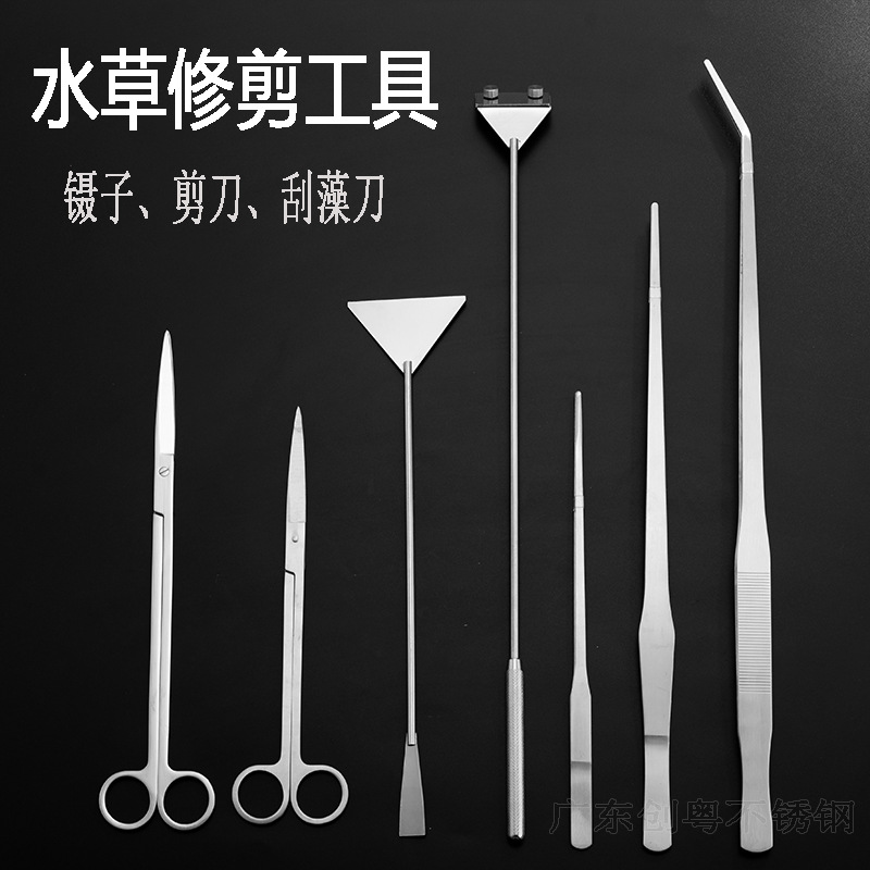 수초 다듬기 및 절단 도구 가위 핀셋 스테인리스 수족관 어항 청소 조경 평사 해조류 제거 세트