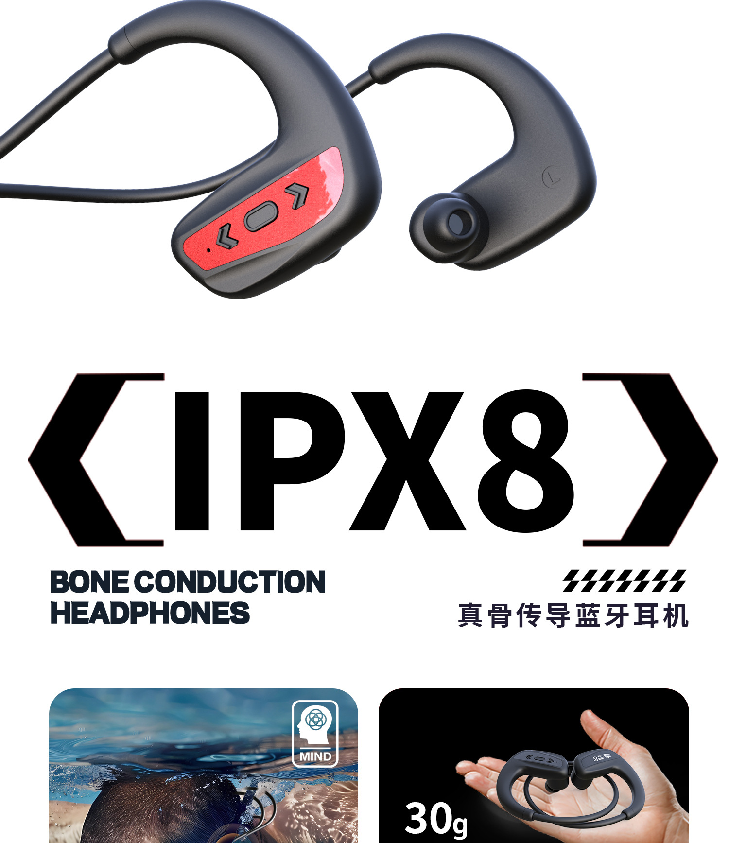 32G 메모리 골전도 헤드셋이 탑재된 새로운 인이어 리얼 골전도 수영 블루투스 헤드셋 무선 스포츠