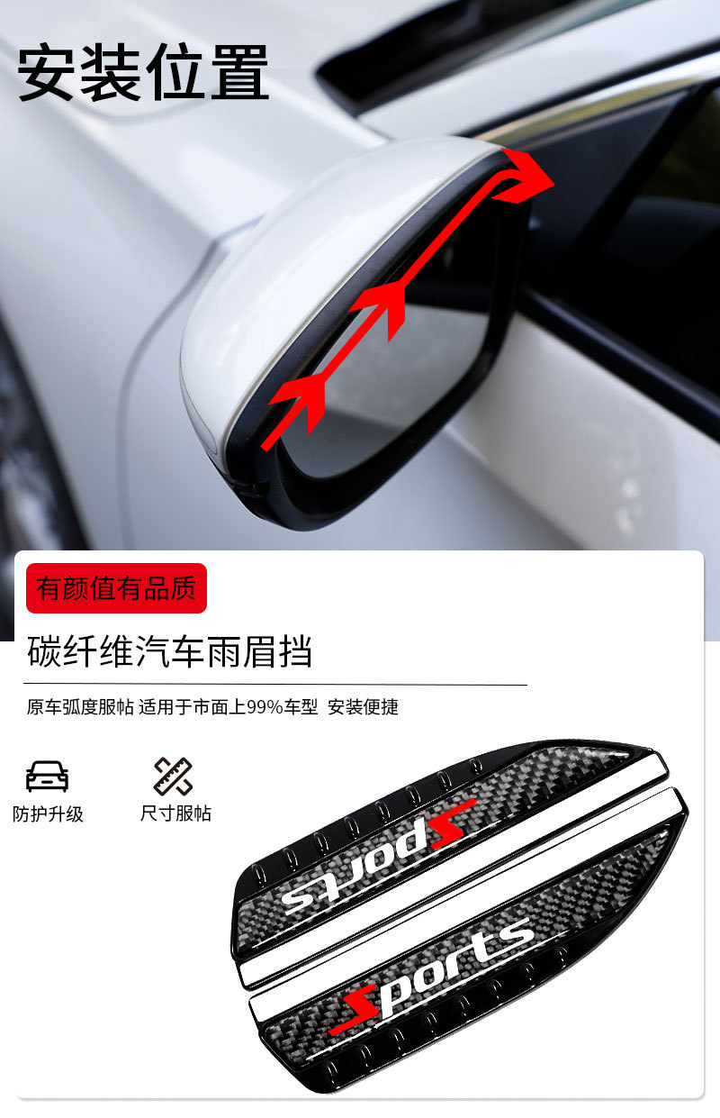 폭발성 자동차 탄소섬유 백미러 비 눈썹 블록 개조 범용 자동차 백미러 비 패치 전용 크로스 보더스토어 가기