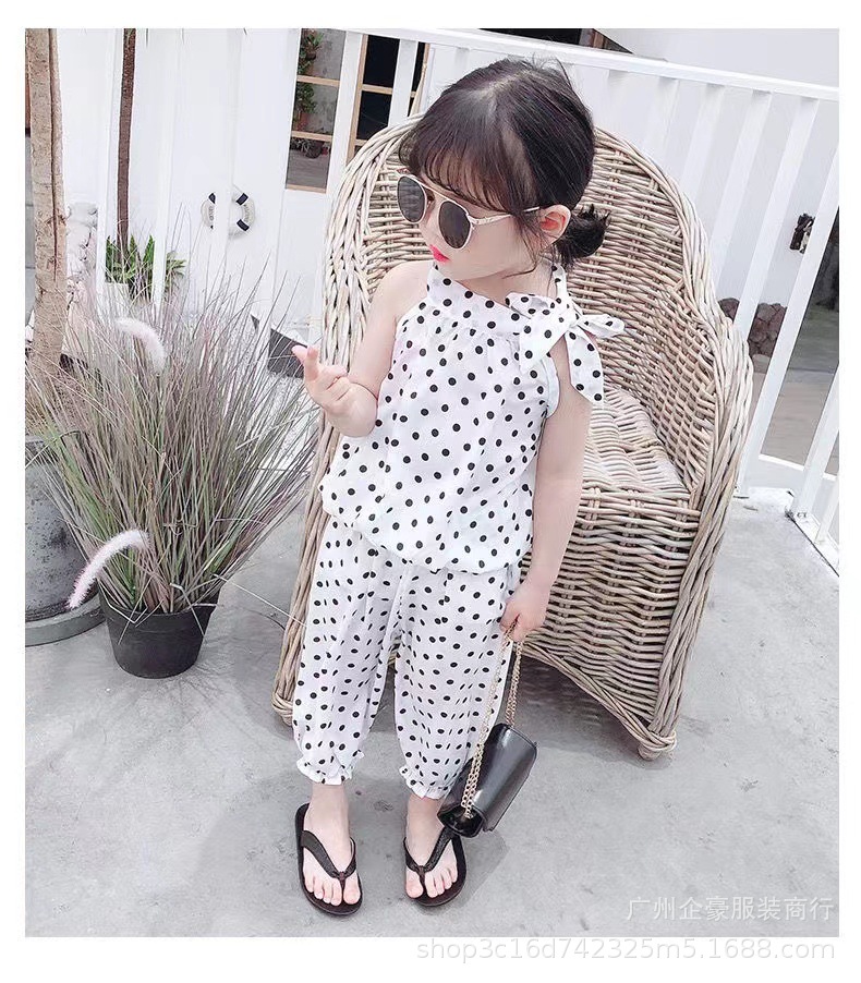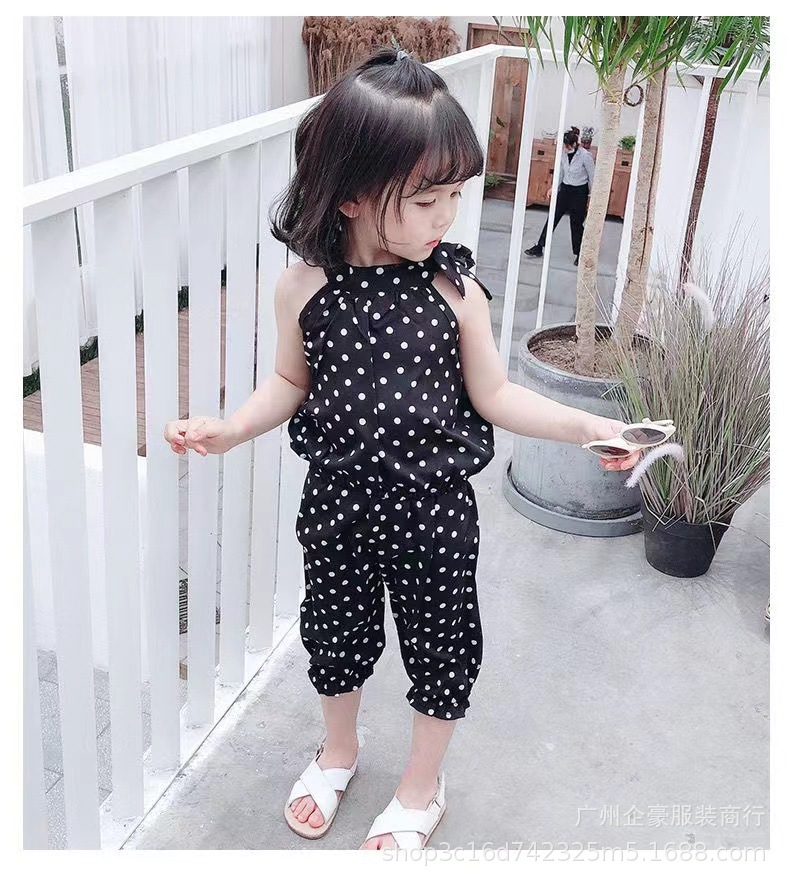 2022 여름 아기 소녀 물방울 무늬 매달려 목 투피스 쉬폰 민소매 세트 0-6 세 5 어린 소녀 그물 빨간 여름 옷스토어 가기