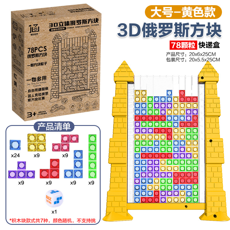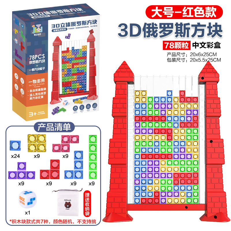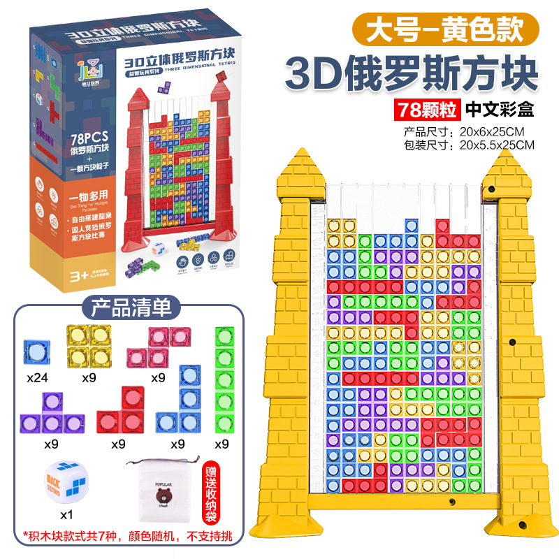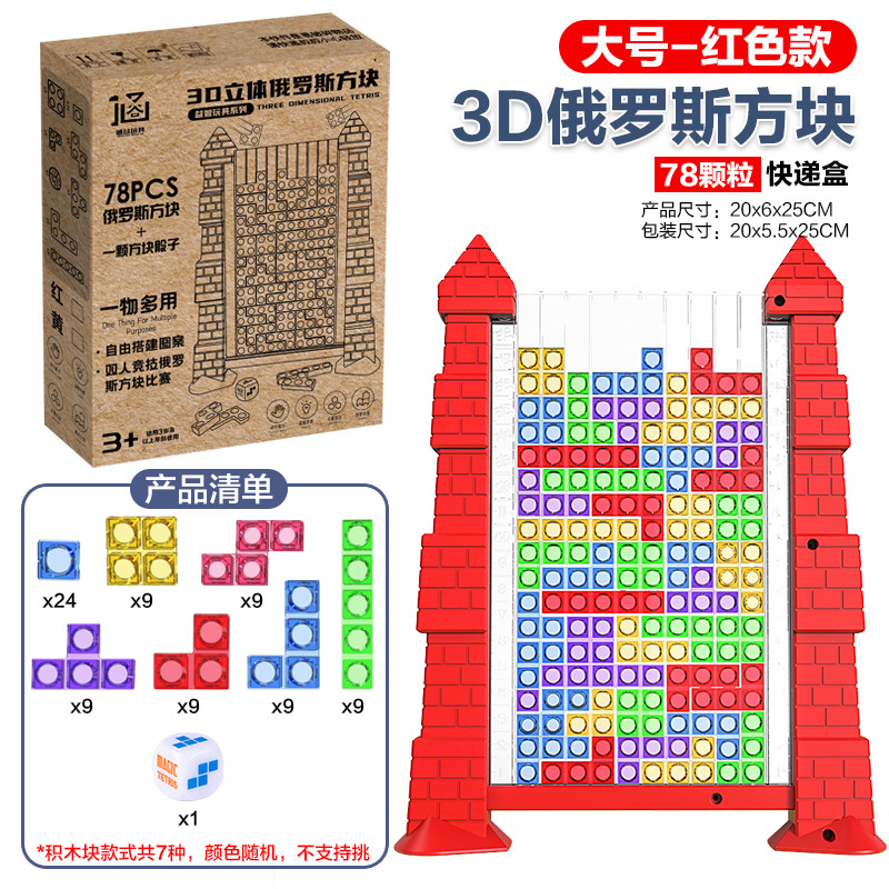 【大号款】立体俄罗斯方块 中文彩盒 78粒配件,骰子x1,收纳袋x1 20x6x25cm 20x5.5x25cm 72 83*36*77CM