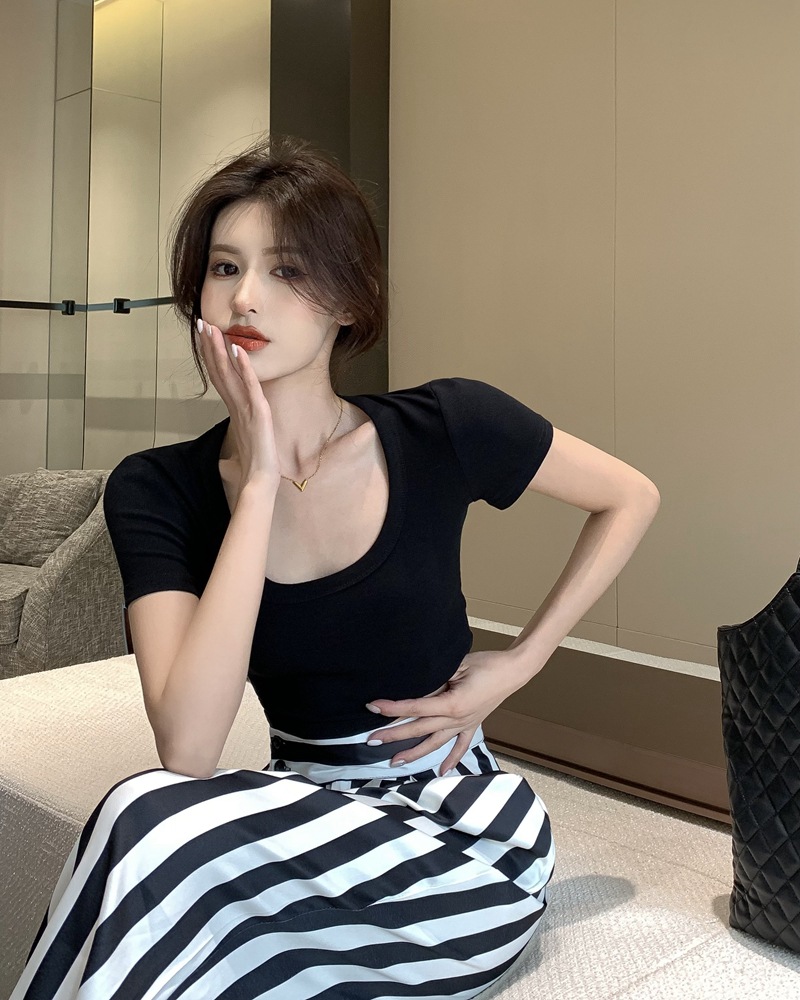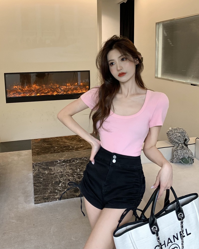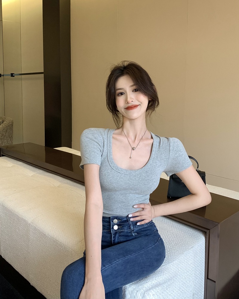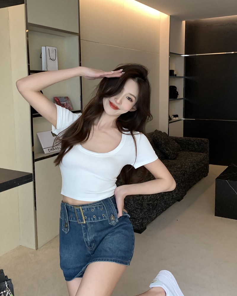 여성용 반팔 여름 2023 새로운 타이트 짧은 배꼽 노출 캐주얼 탑 트렌디 인 스파이스 걸스 순수한 욕망 소녀 티셔츠