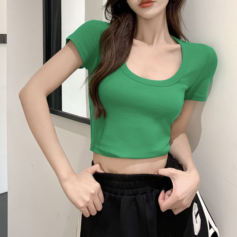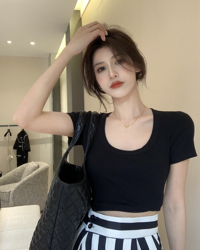 여성용 반팔 여름 2023 새로운 타이트 짧은 배꼽 노출 캐주얼 탑 트렌디 인 스파이스 걸스 순수한 욕망 소녀 티셔츠스토어 가기