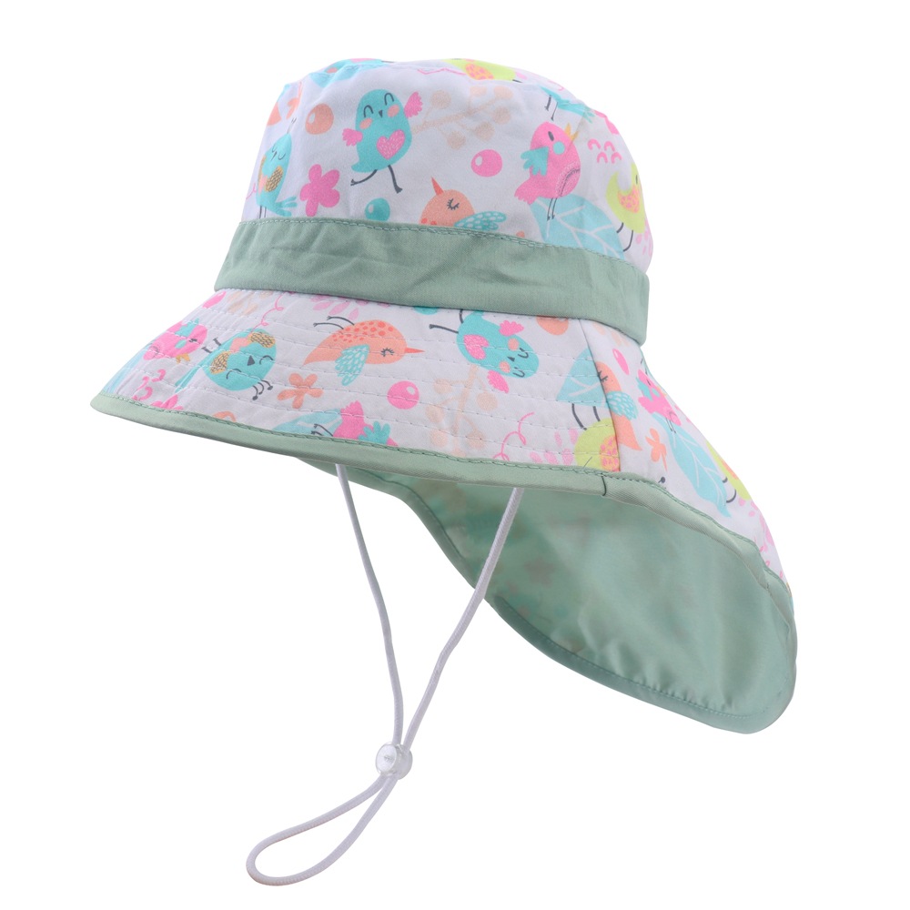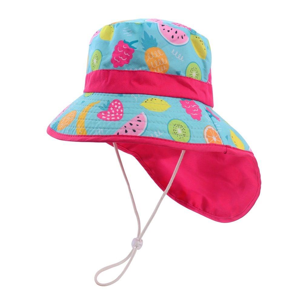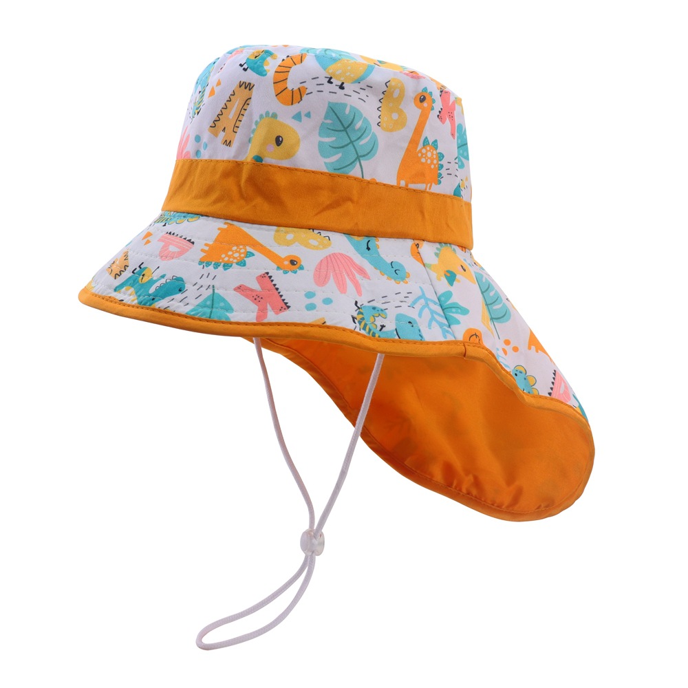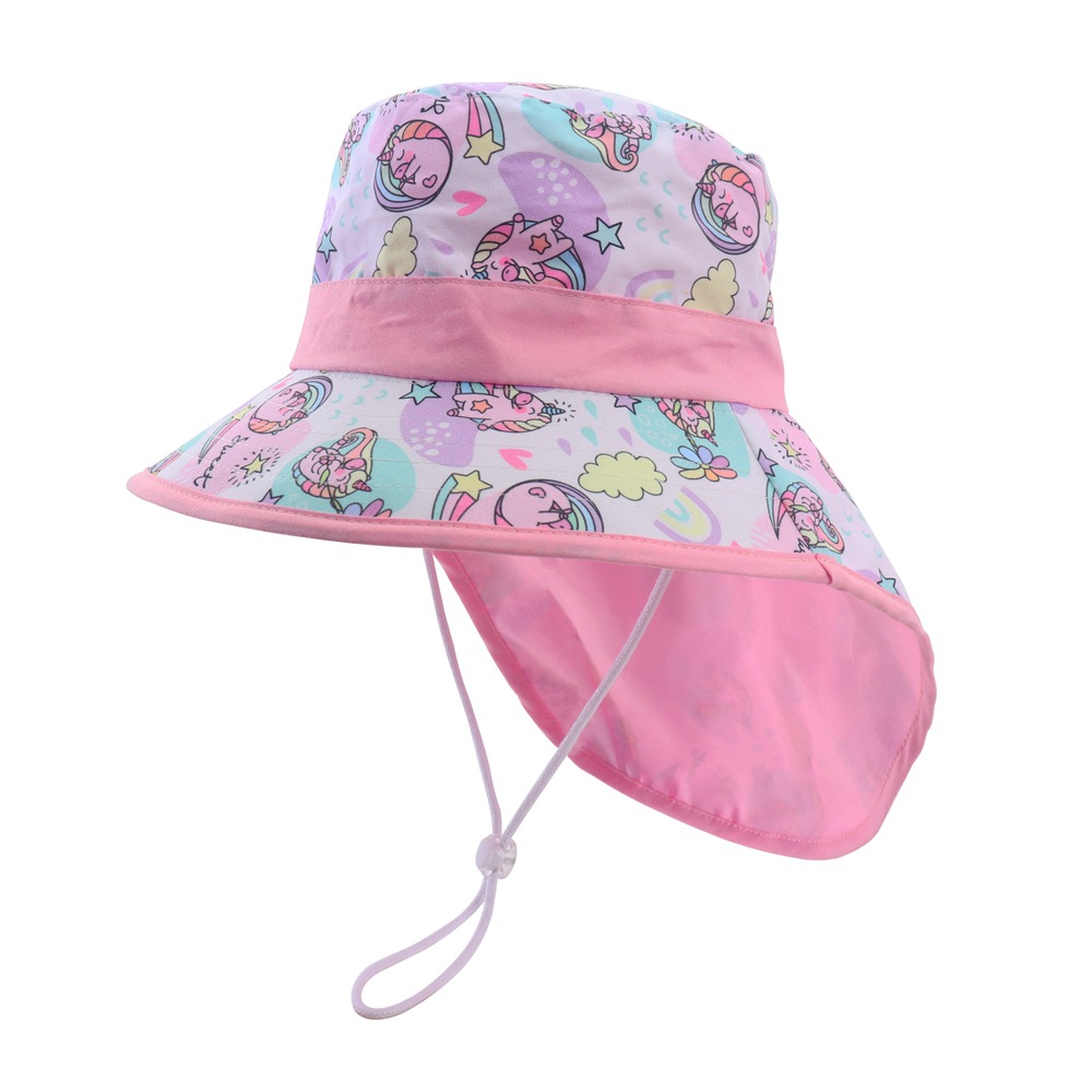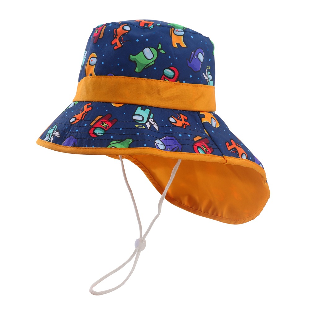 대외 무역 아마존 어린이 큰 이브 인쇄 만화 숄 모자 여행 자외선 차단제 비치 모자 여아 어부 모자 목 보호