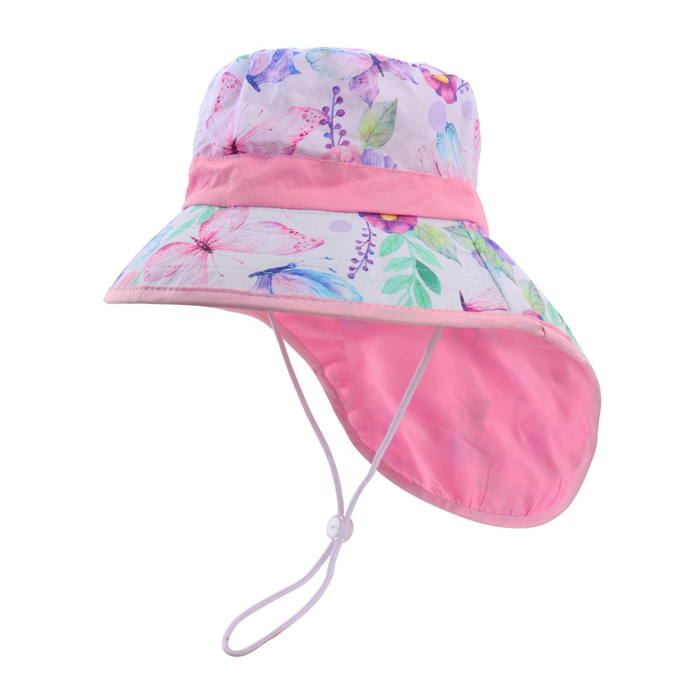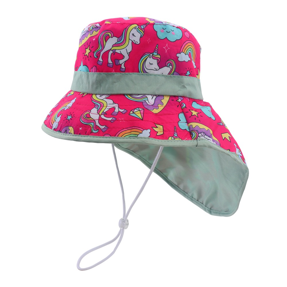 대외 무역 아마존 어린이 큰 이브 인쇄 만화 숄 모자 여행 자외선 차단제 비치 모자 여아 어부 모자 목 보호스토어 가기