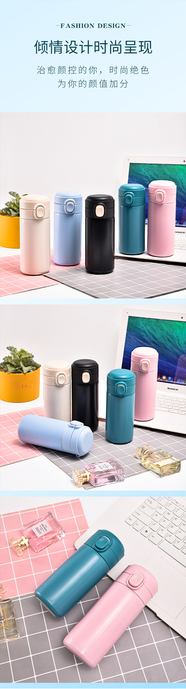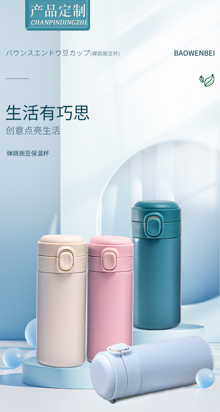 새로운 304 스테인레스 스틸 보온병 컵 크리에이티브 바운스 커버 스트레이트 미니 워터 컵 남녀 학생 완두콩 맞춤형