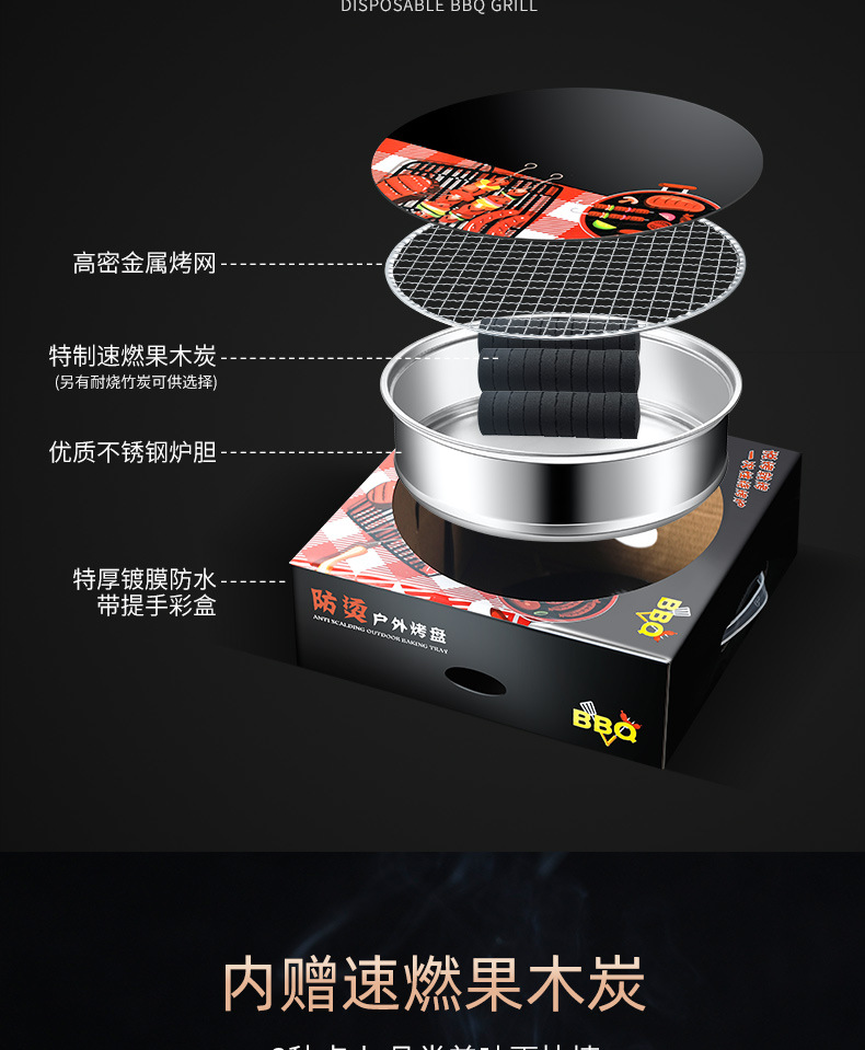 금귤 셀프 그릴 일회용 휴대용 바베큐 오븐 야외 캠핑 가정용 과일 숯 그릴 대형 숯 그릴