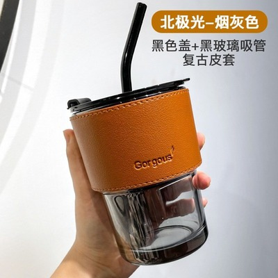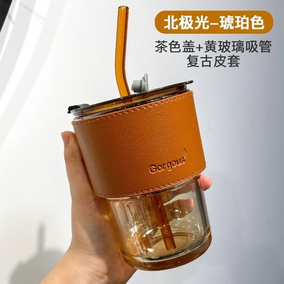 유리 대나무 컵 그물 레드 오로라 조명 하이 컬러 값 휴대용 밀짚 커플 학생 물 컵 스타일에 내열성스토어 가기