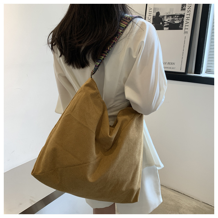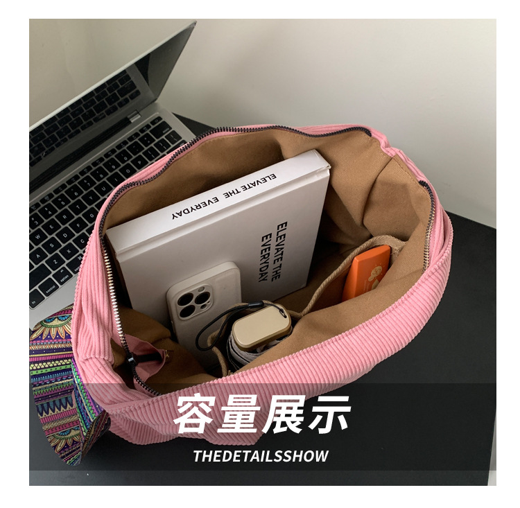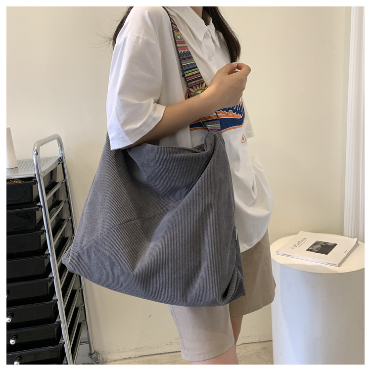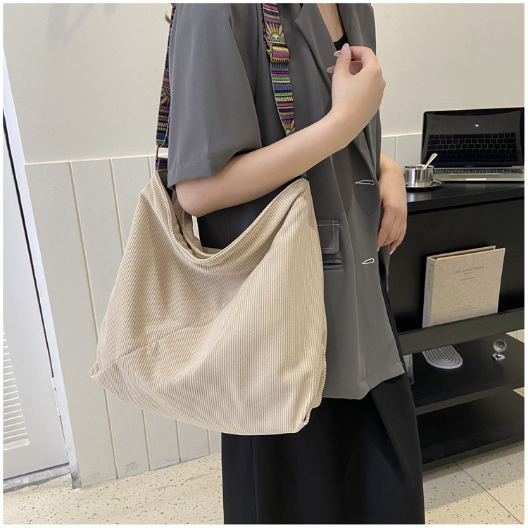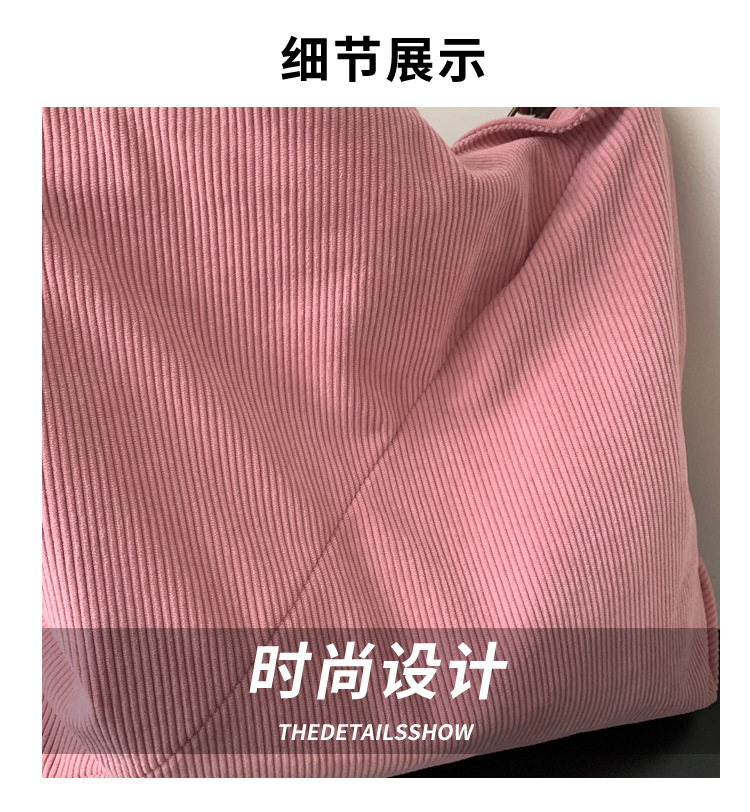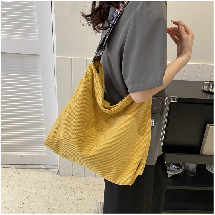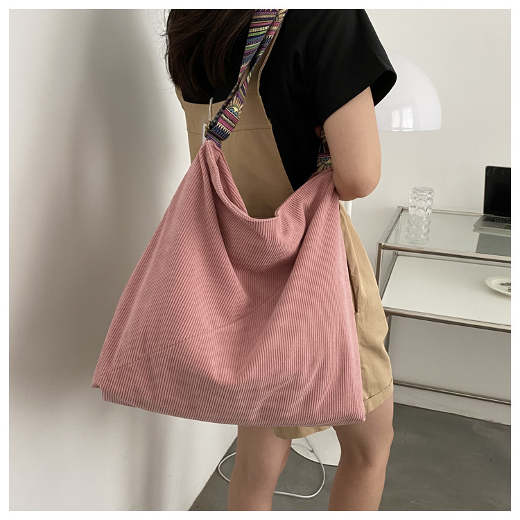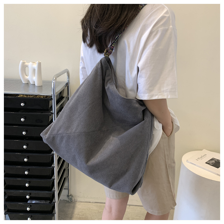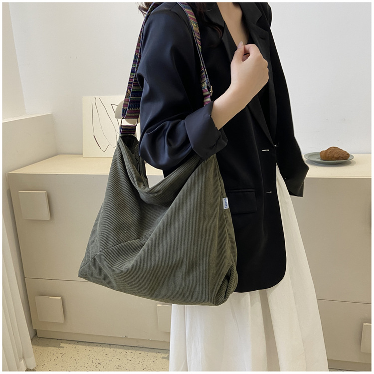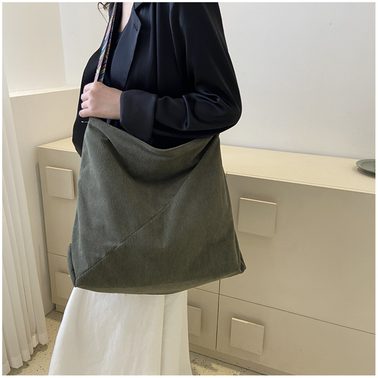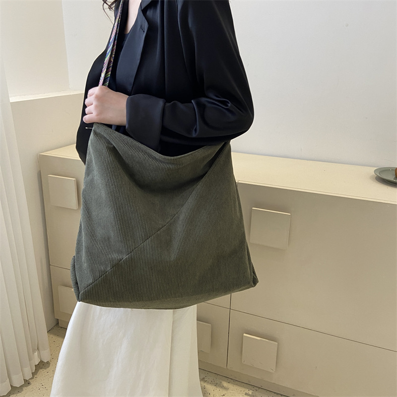 2024년 신상 대용량 코듀로이 여성 가방 유럽 및 미국 패션 캐주얼 숄더백 심플 크로스백 캔버스 가방스토어 가기