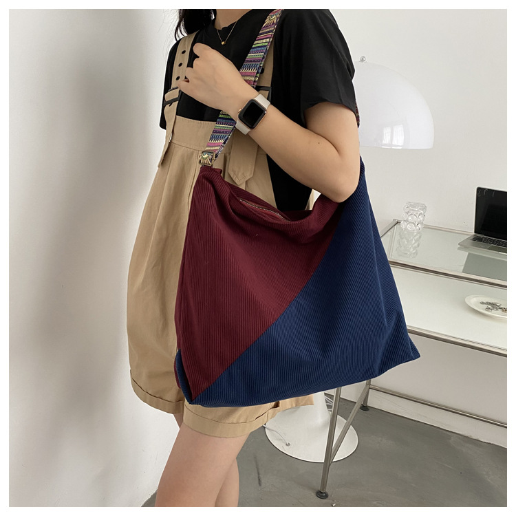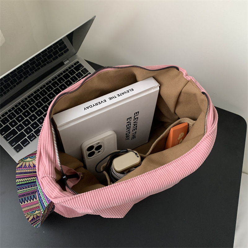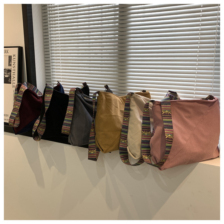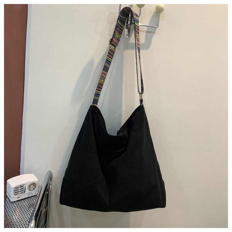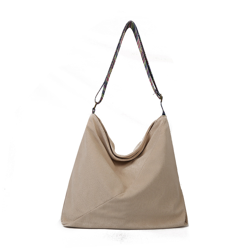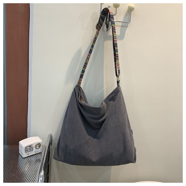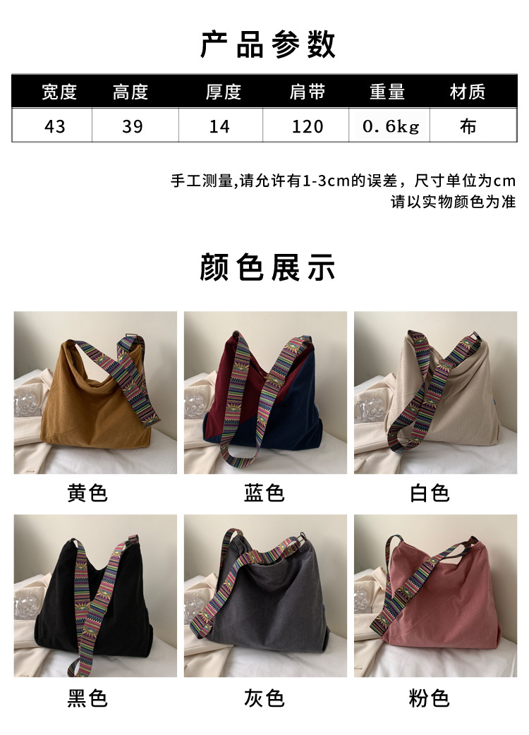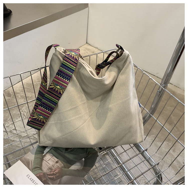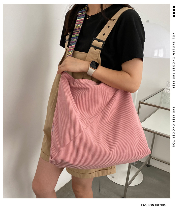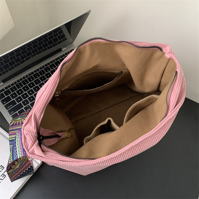 2024년 신상 대용량 코듀로이 여성 가방 유럽 및 미국 패션 캐주얼 숄더백 심플 크로스백 캔버스 가방스토어 가기