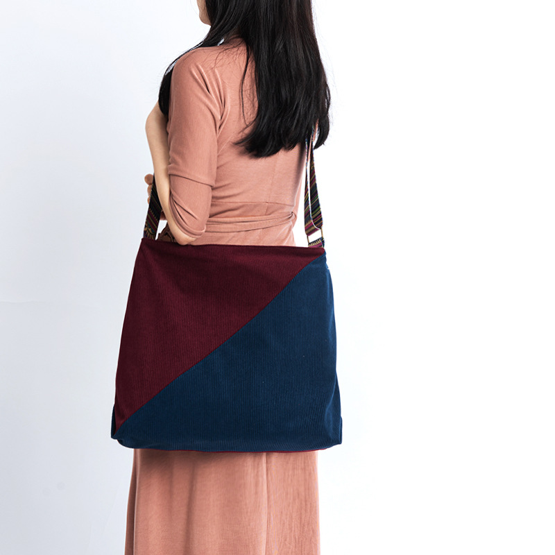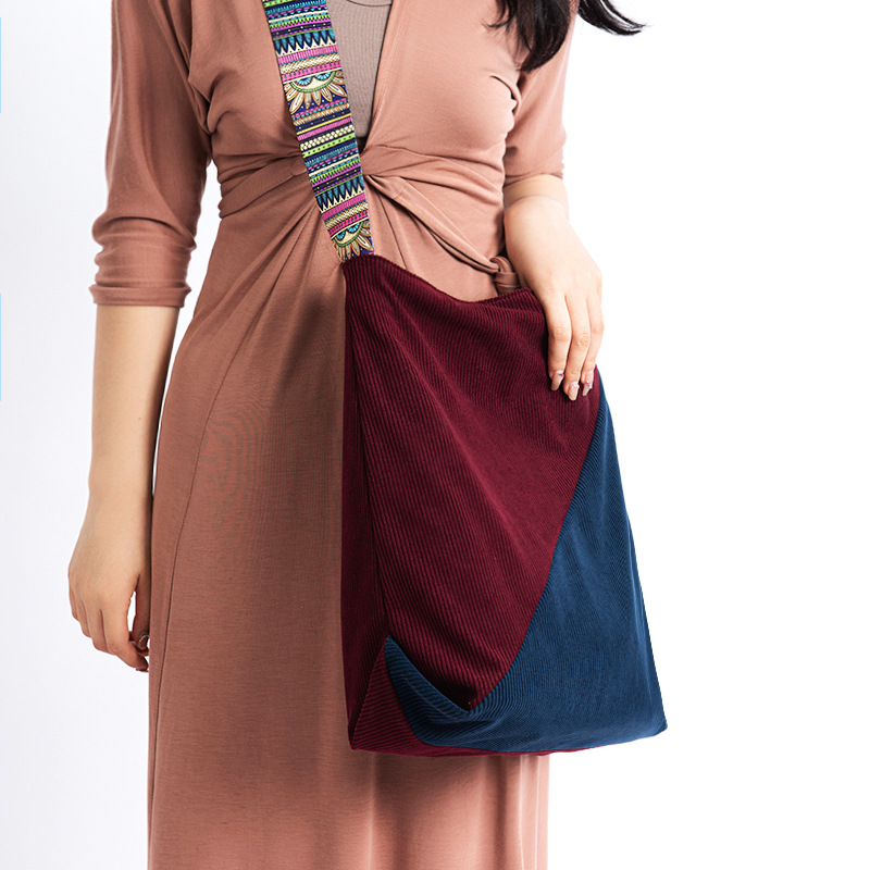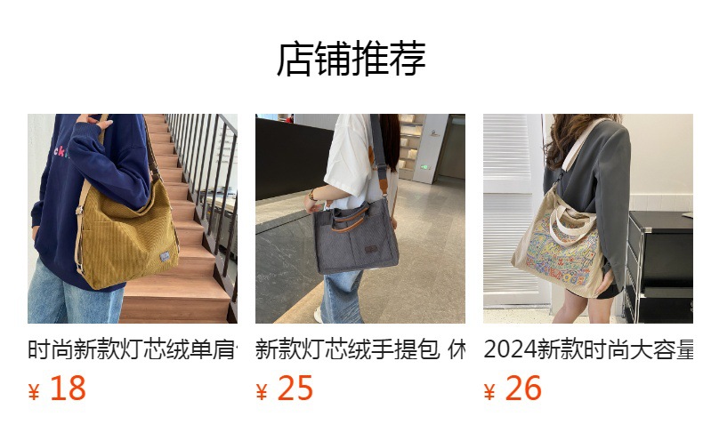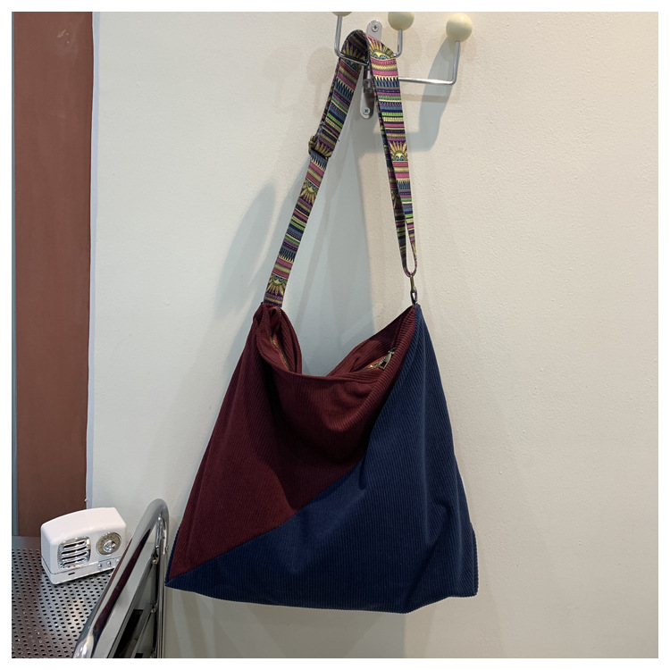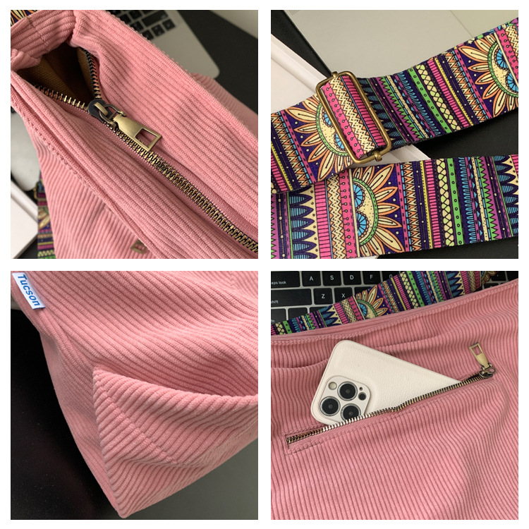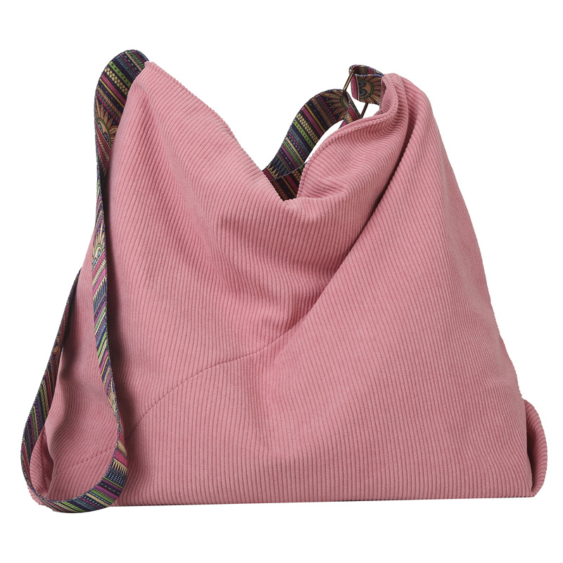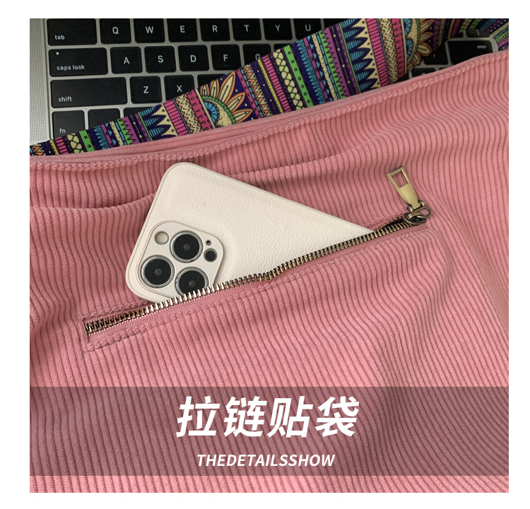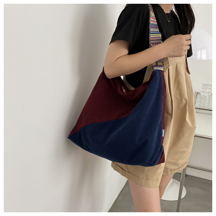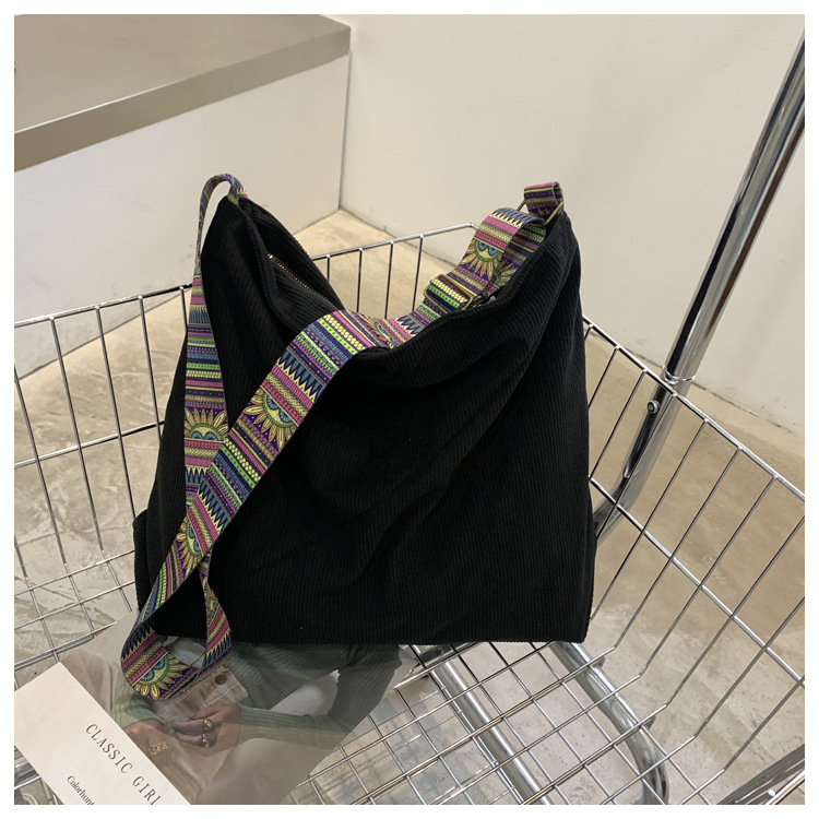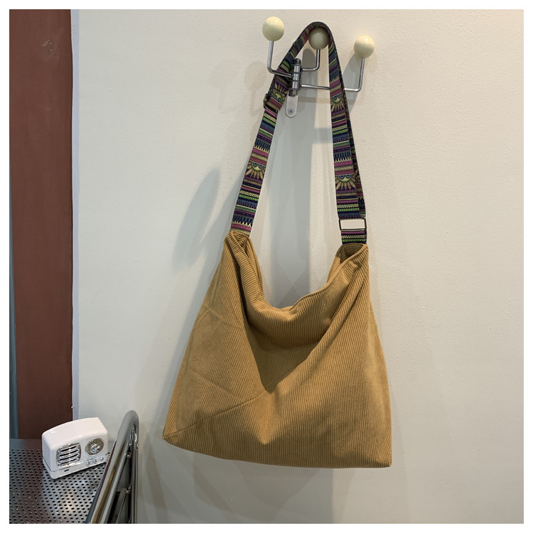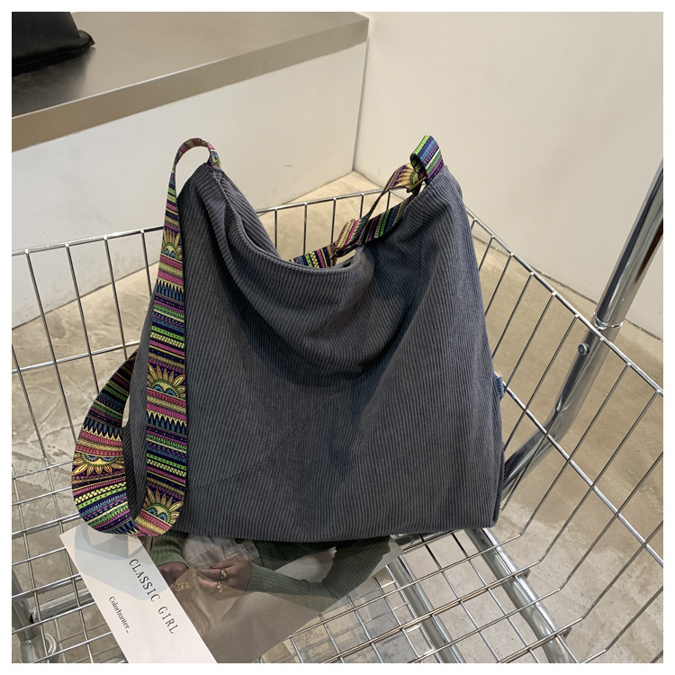 2024년 신상 대용량 코듀로이 여성 가방 유럽 및 미국 패션 캐주얼 숄더백 심플 크로스백 캔버스 가방스토어 가기