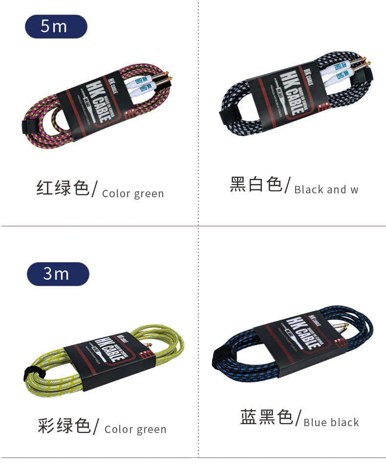 기타 연결 와이어 블랙 가죽 3 M 5 M 10 m 짠 고급 소음 감소 전기 기타 전기 상자 베이스 오디오 연결 와이어
