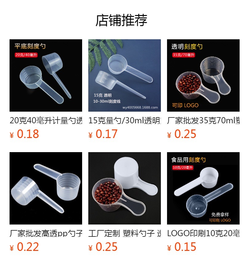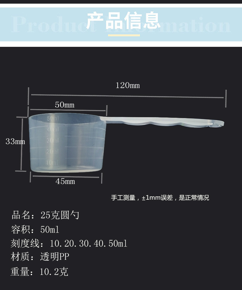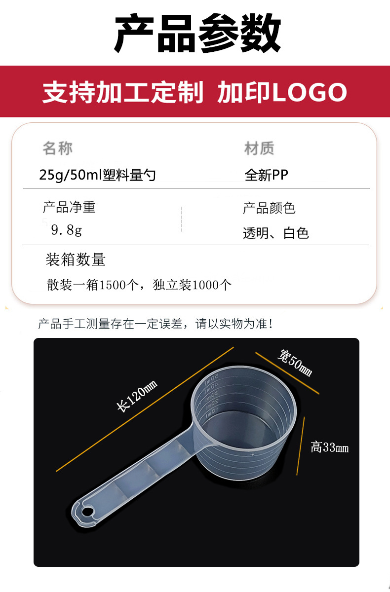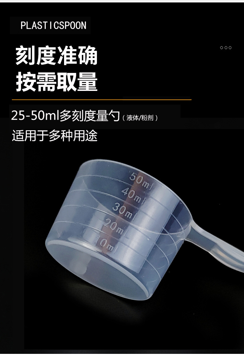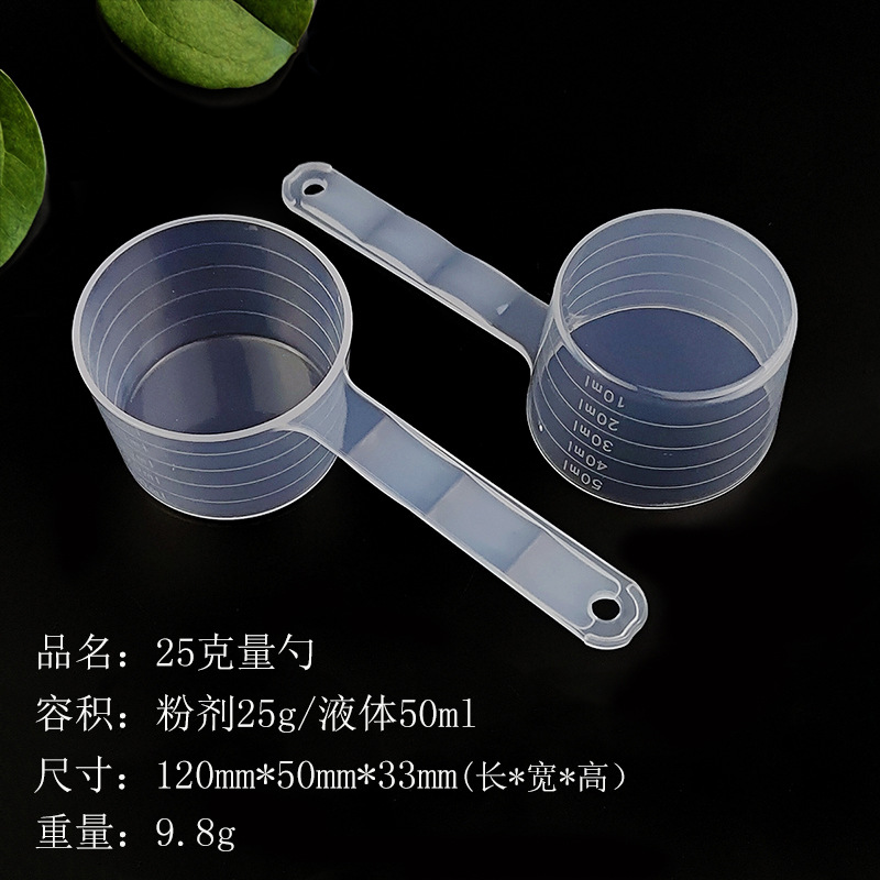容量:本勺子平一勺,粉剂25克/液体为50ml,(容量:粉剂以奶粉和液体以水作为参照物,其它物体可能存在误差,需要客人自行确认)