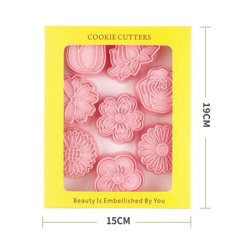 꽃 비스킷 금형 플라스틱 3D 가정용 케이크 금형 프레스 베이킹 도구 쿠키 씰 금형 꽃잎