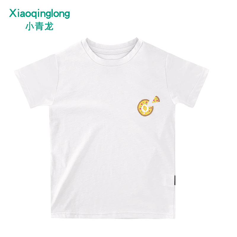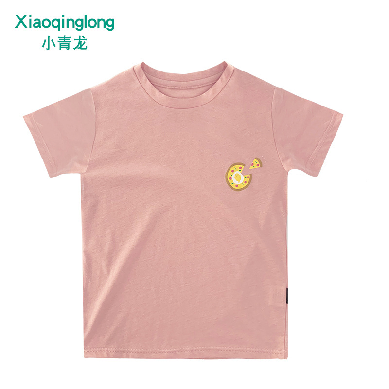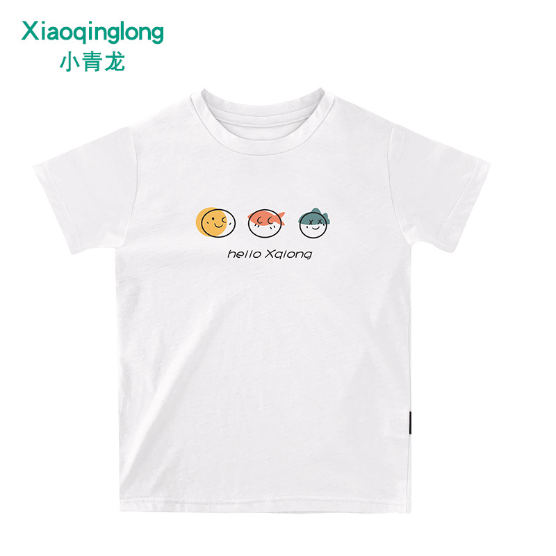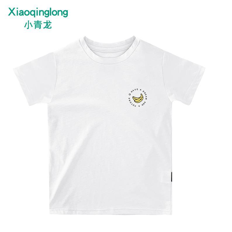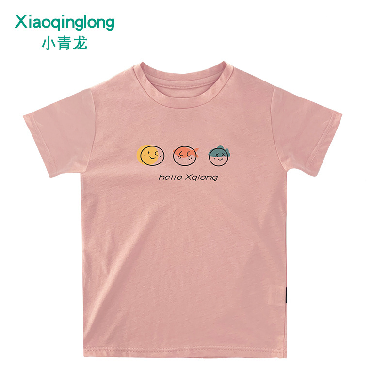 Little Qinglong 아동용 반팔 티셔츠 소년 소녀 여름 새로운 스타일 중형 어린이 얇은 순면 한국식 유행