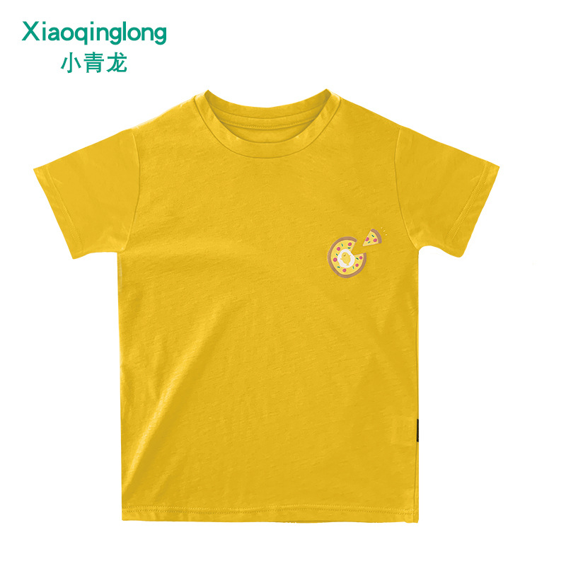 Little Qinglong 아동용 반팔 티셔츠 소년 소녀 여름 새로운 스타일 중형 어린이 얇은 순면 한국식 유행스토어 가기