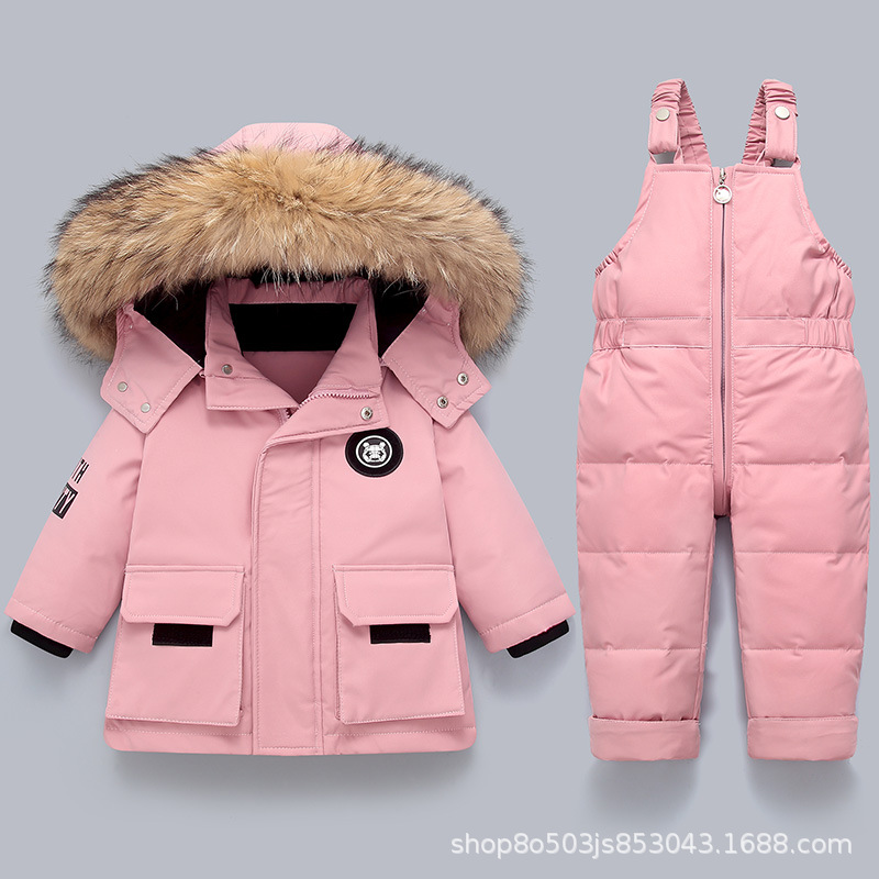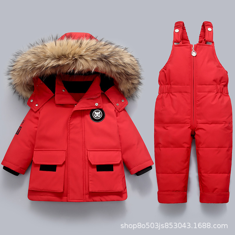 베이비 다운 재킷 소년 2024 새로운 정장 어린이 아기 1-5 세 어린이 스타일 투피스 겨울 정장 두꺼운스토어 가기