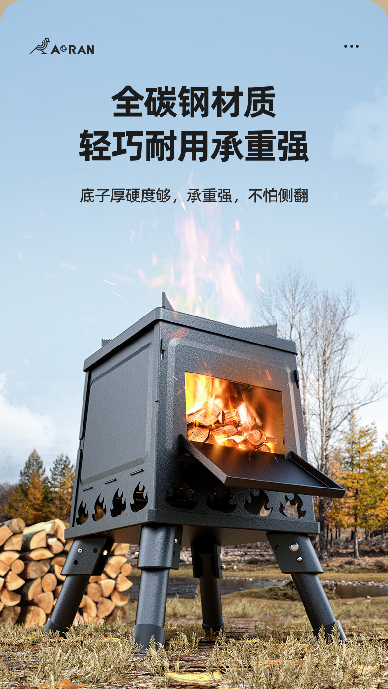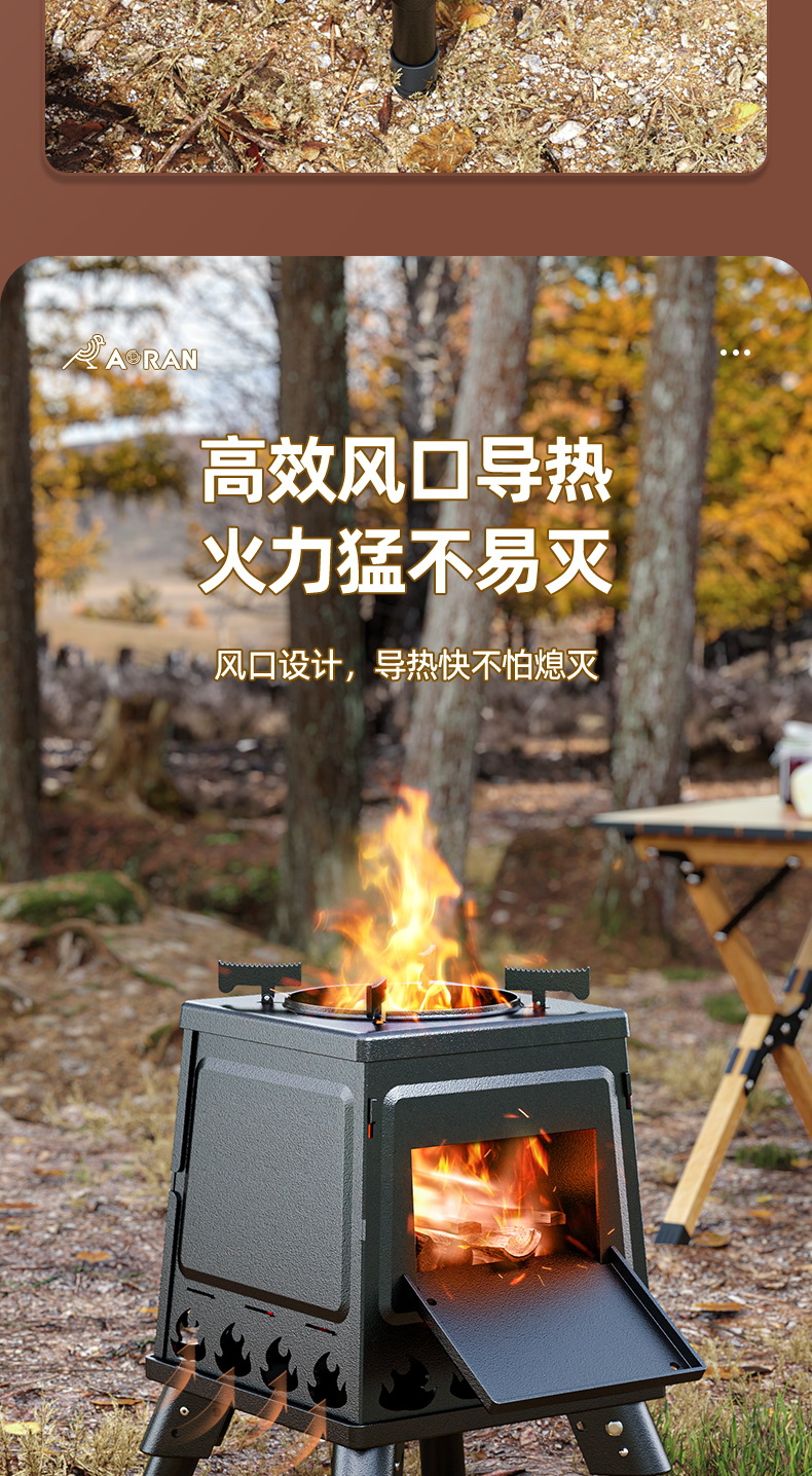 아오란 장작 난로, 야외 휴대용 난로, 야외 캠핑 조리기구, 피크닉 스토브, 접이식 난로스토어 가기