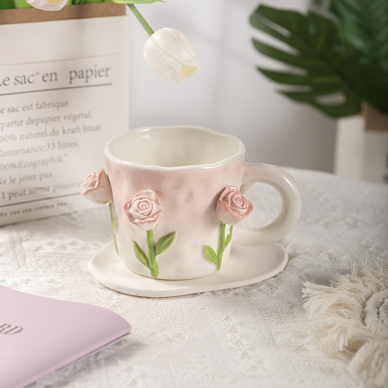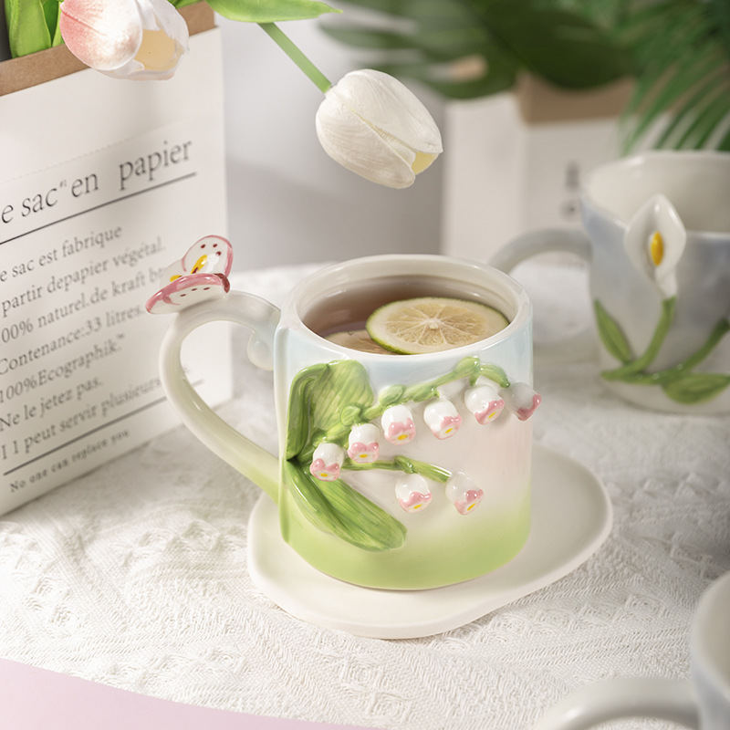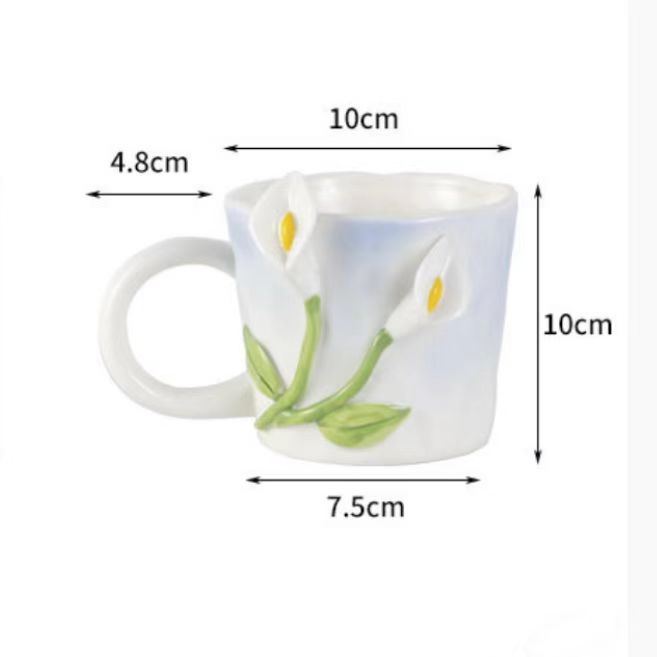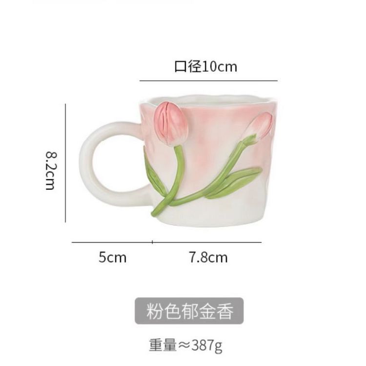 원래 3 차원 구호 튤립 손으로 반죽 꽃 소녀 심장 바람 종 꽃 세라믹 머그잔 휴일 선물 컵스토어 가기
