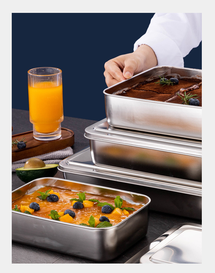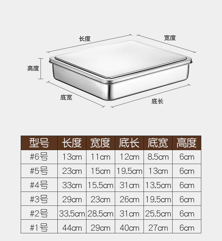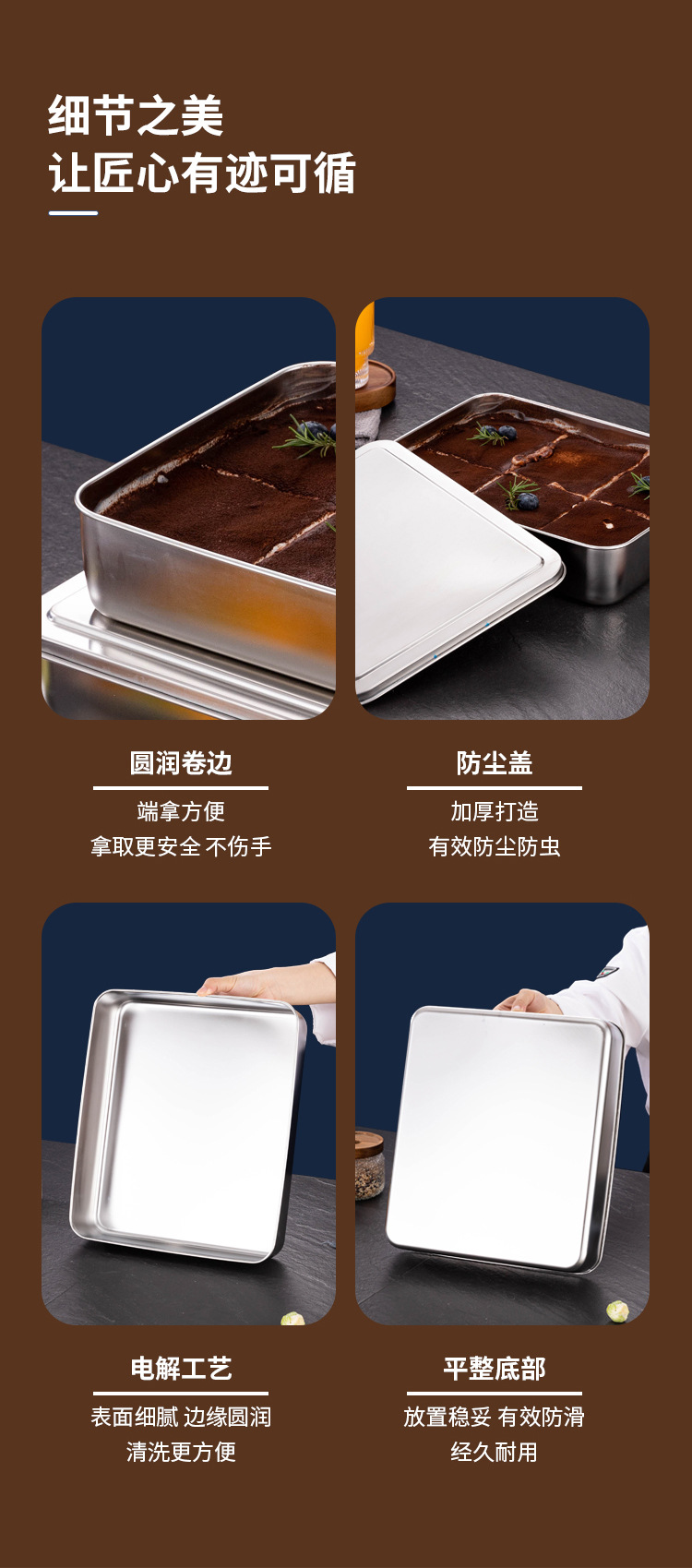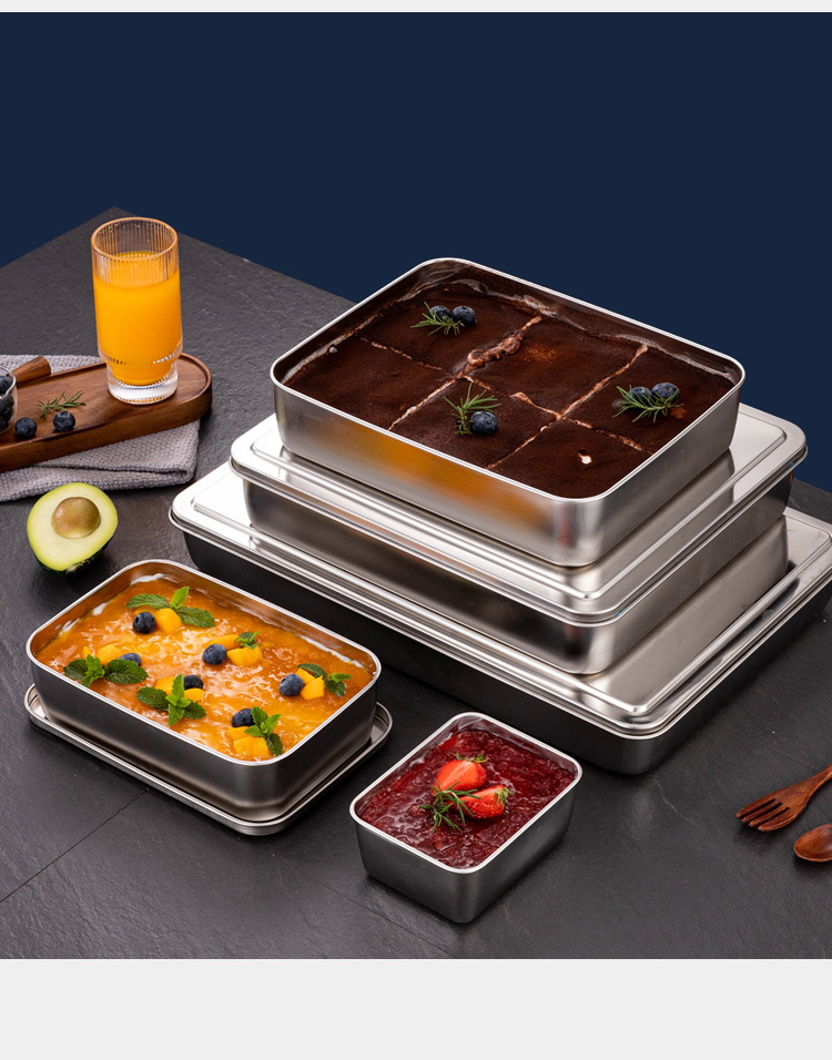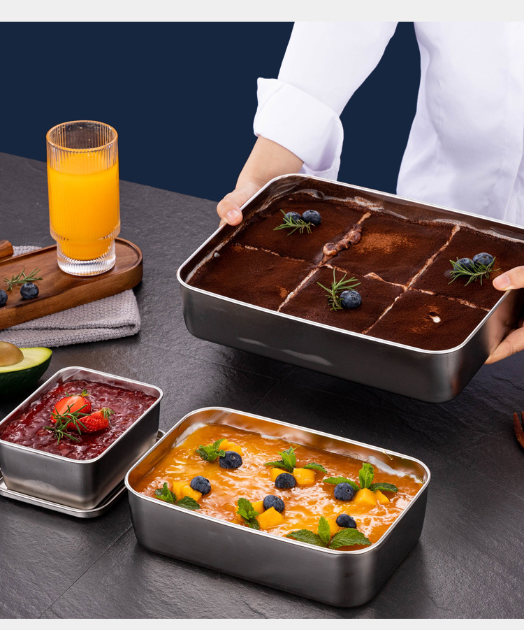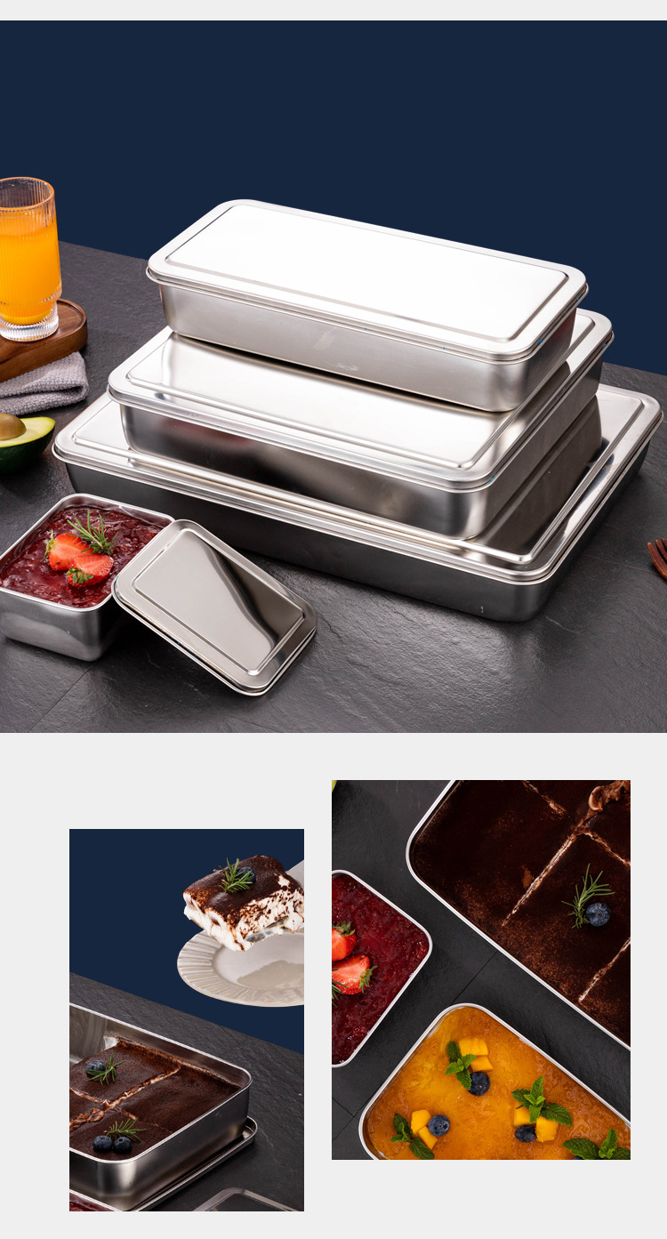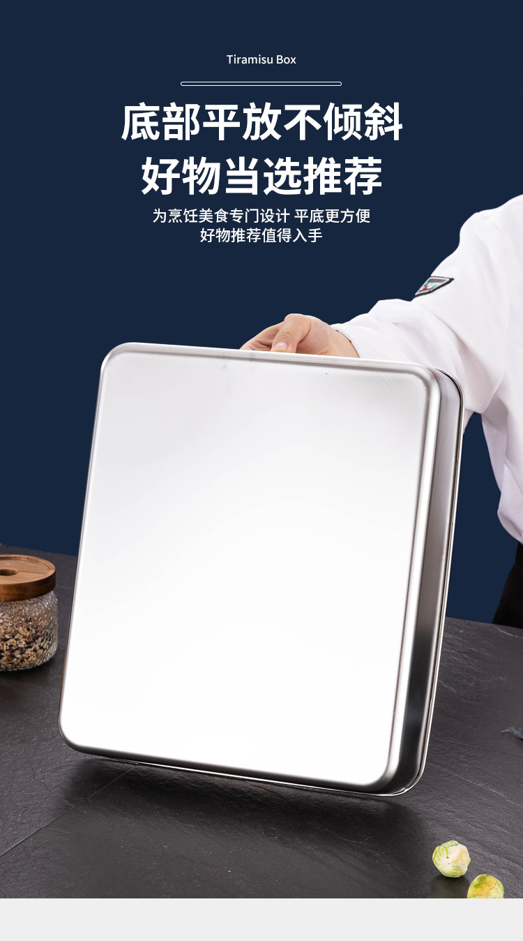 带盖不锈钢提拉米苏盘加厚平底方盘多规格长方形盒蛋糕盘烘焙盘