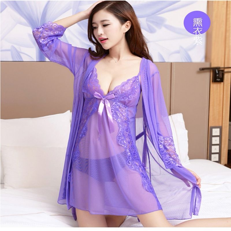 섹시한 속옷 레이스 메쉬 슬링 잠옷 V-넥 원근법 분할 슬링 로브 가정 옷 3 종 세트스토어 가기