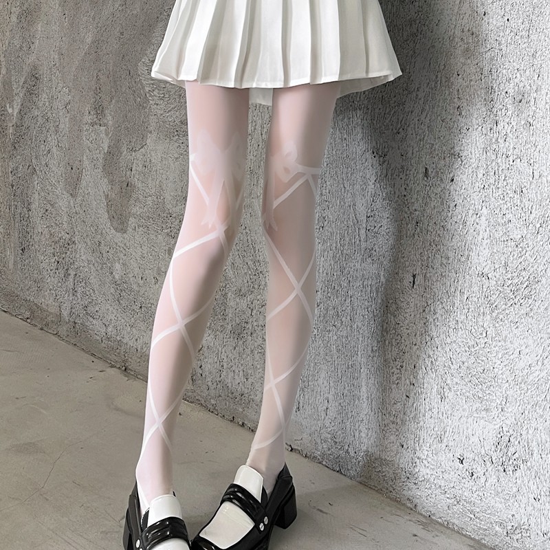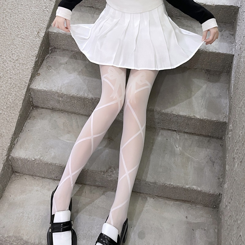 로리타 달콤한 여름 활 블랙 실크 화이트 스타킹 섹시한 로리타 다리 투명 얇은 양말