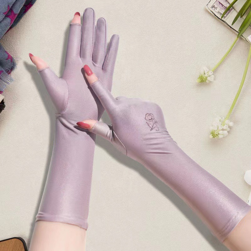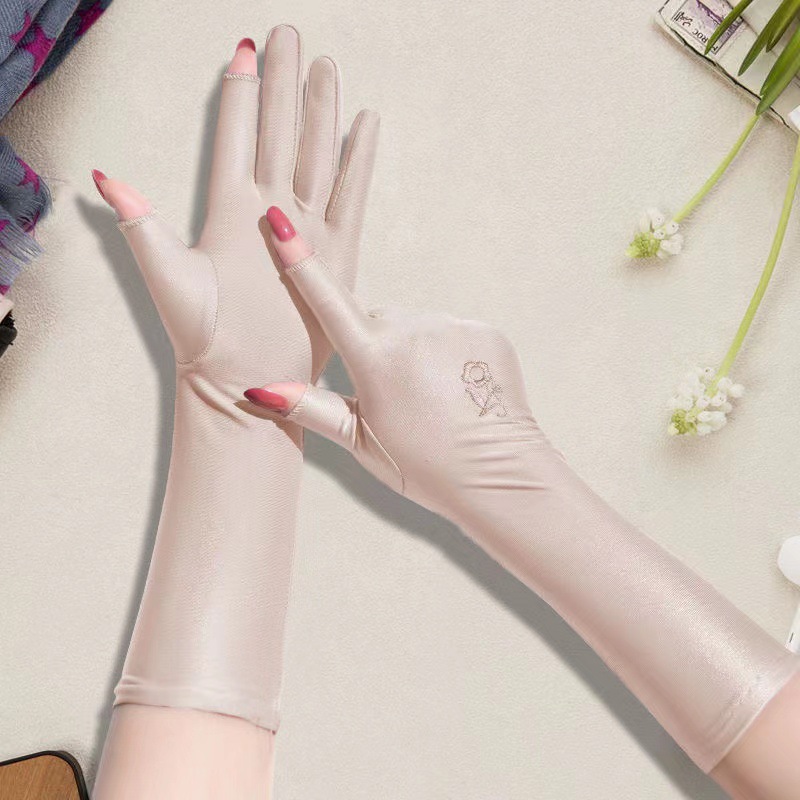 자외선 차단제 장갑 여성용 자외선 차단 롱 터치 스크린 여름 아이스 씬 아이스 실크 핸드 가드 슬리브 야외 라이딩 도매
