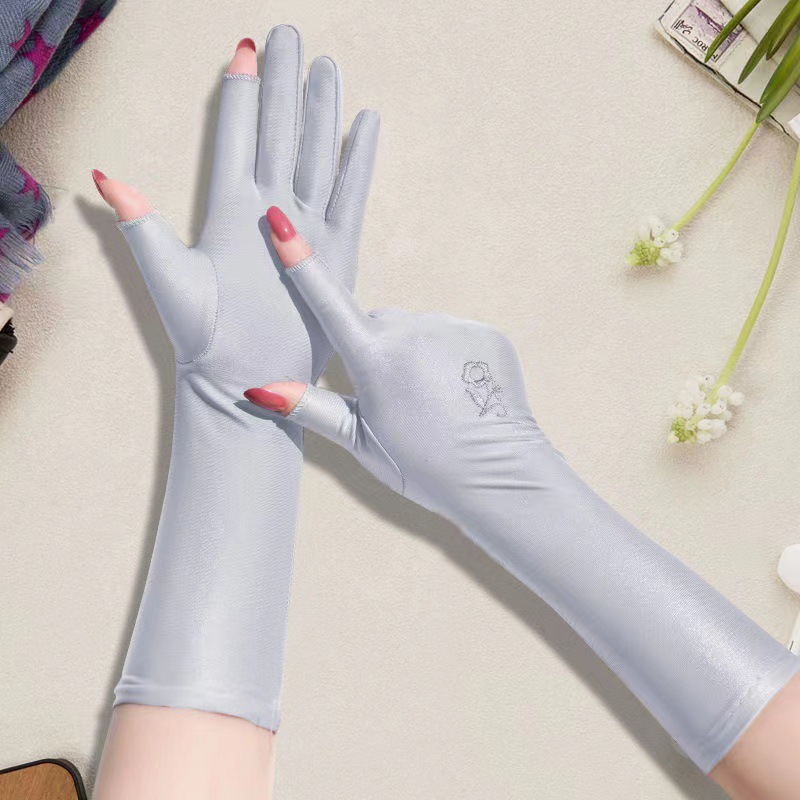 자외선 차단제 장갑 여성용 자외선 차단 롱 터치 스크린 여름 아이스 씬 아이스 실크 핸드 가드 슬리브 야외 라이딩 도매스토어 가기