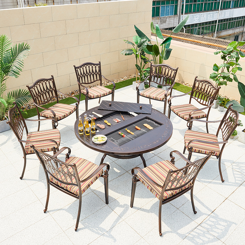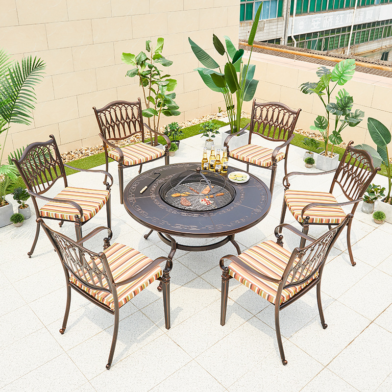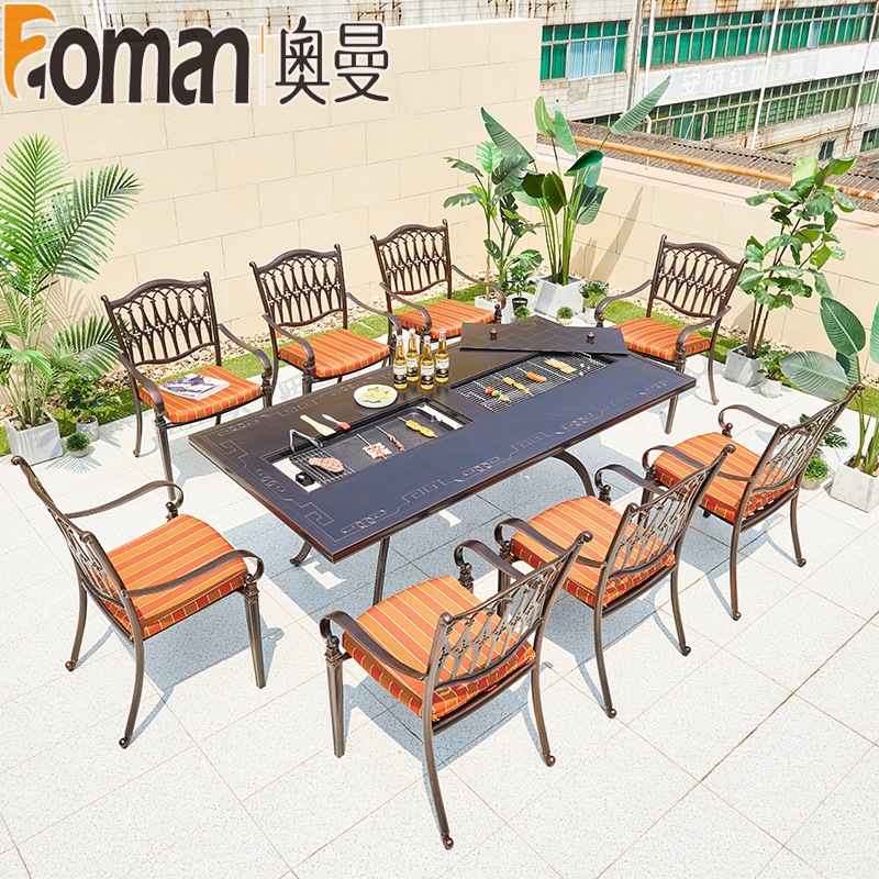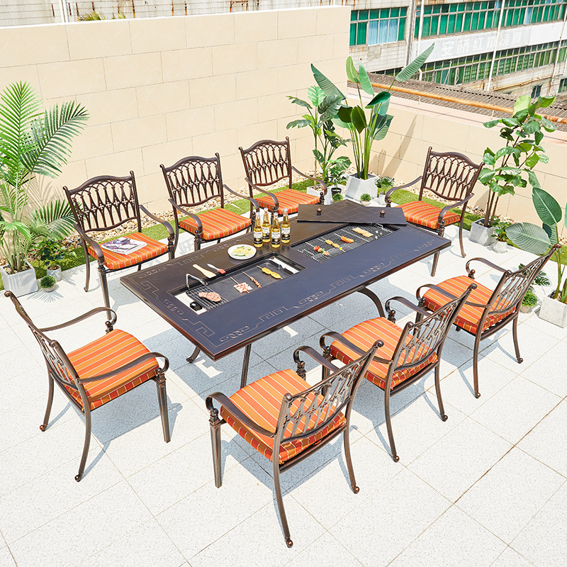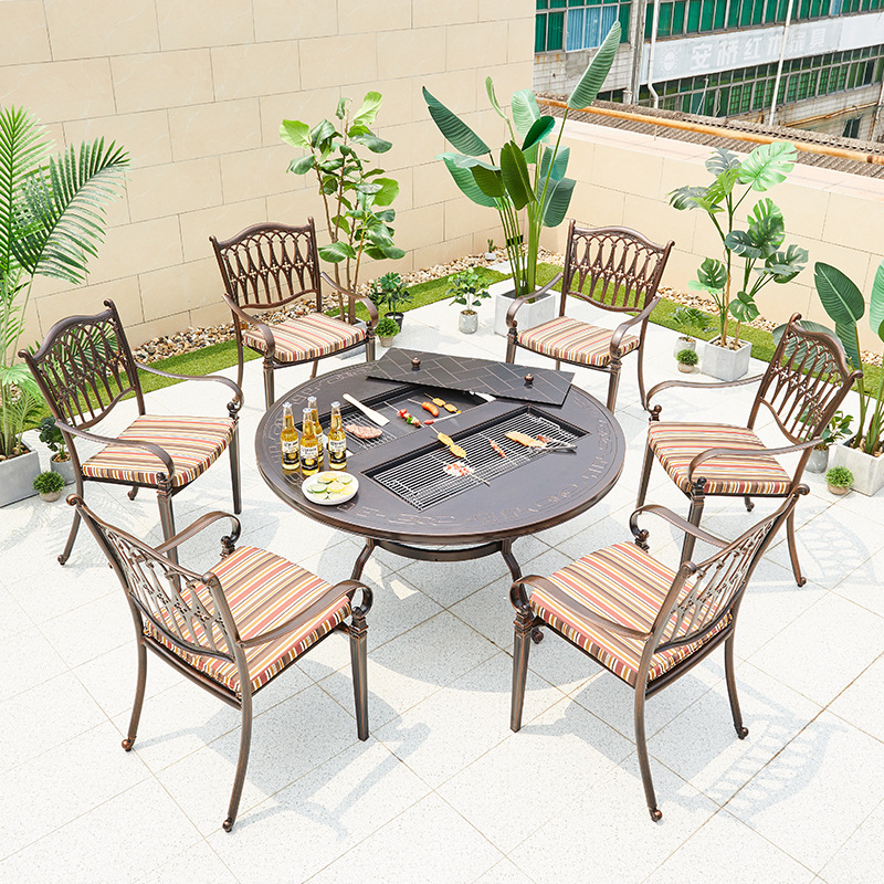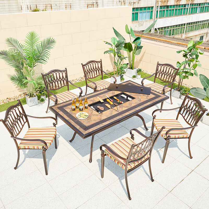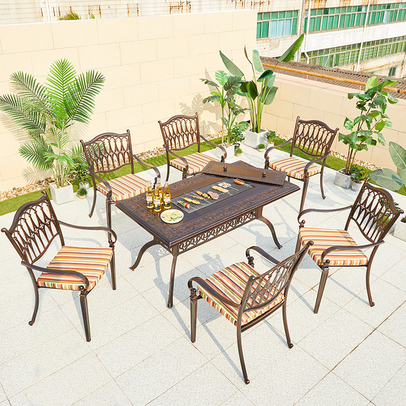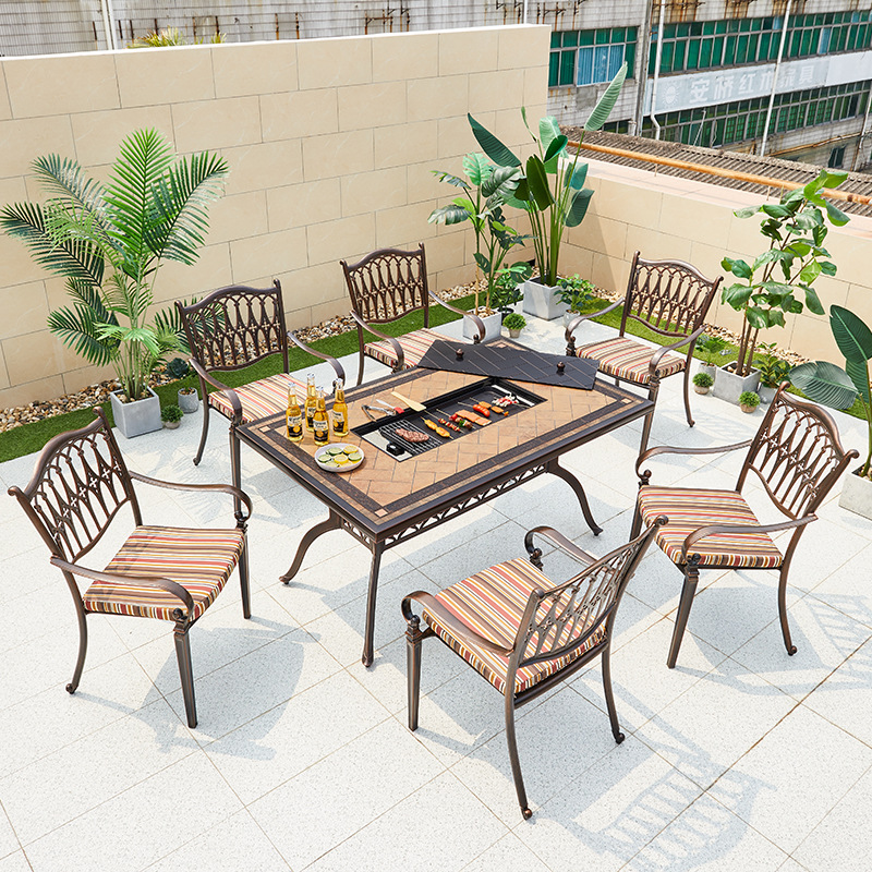 야외 바베큐 테이블 빌라 안뜰 테이블 가정용 바베큐 테이블 빌라 캐스트 알루미늄 테이블과 의자 발코니 야외 식탁 조합스토어 가기