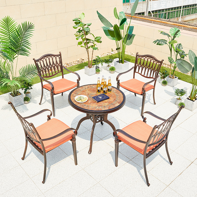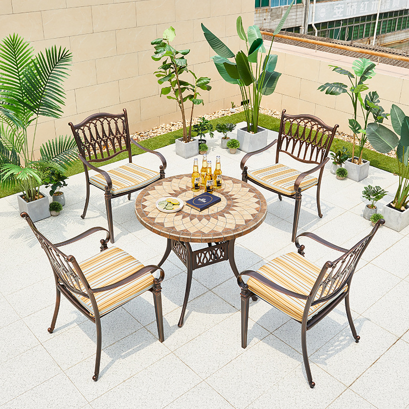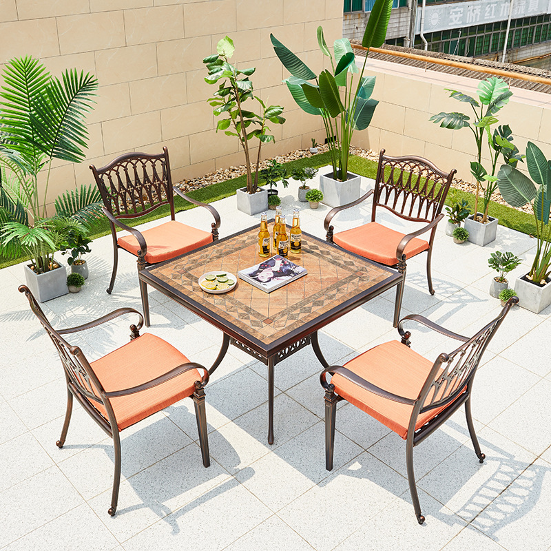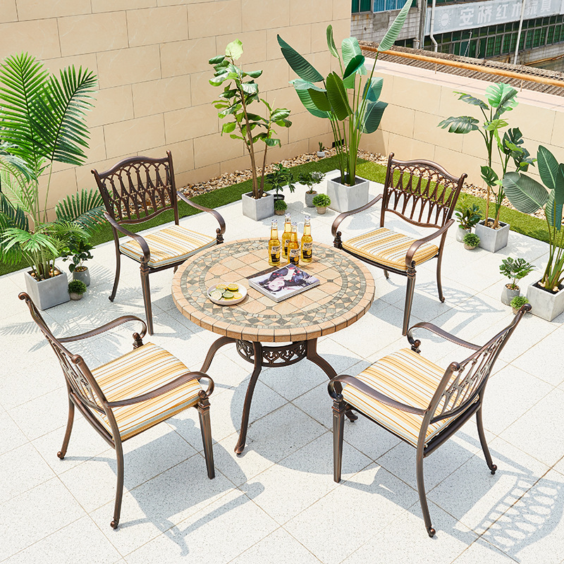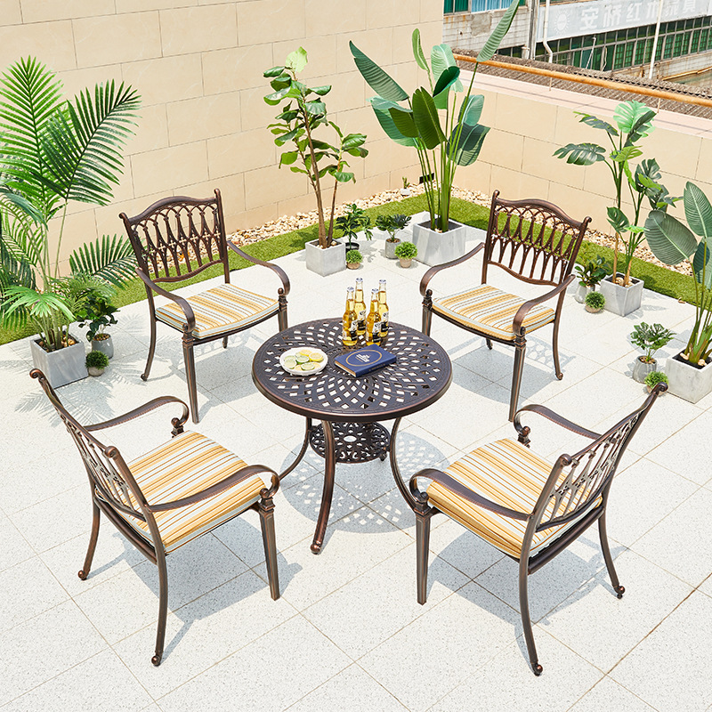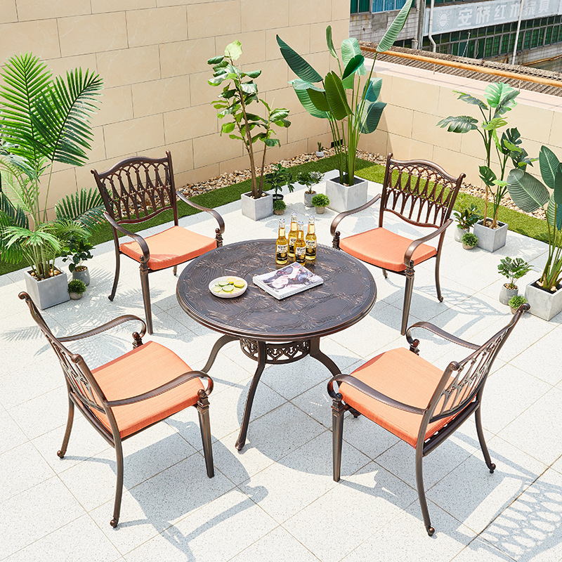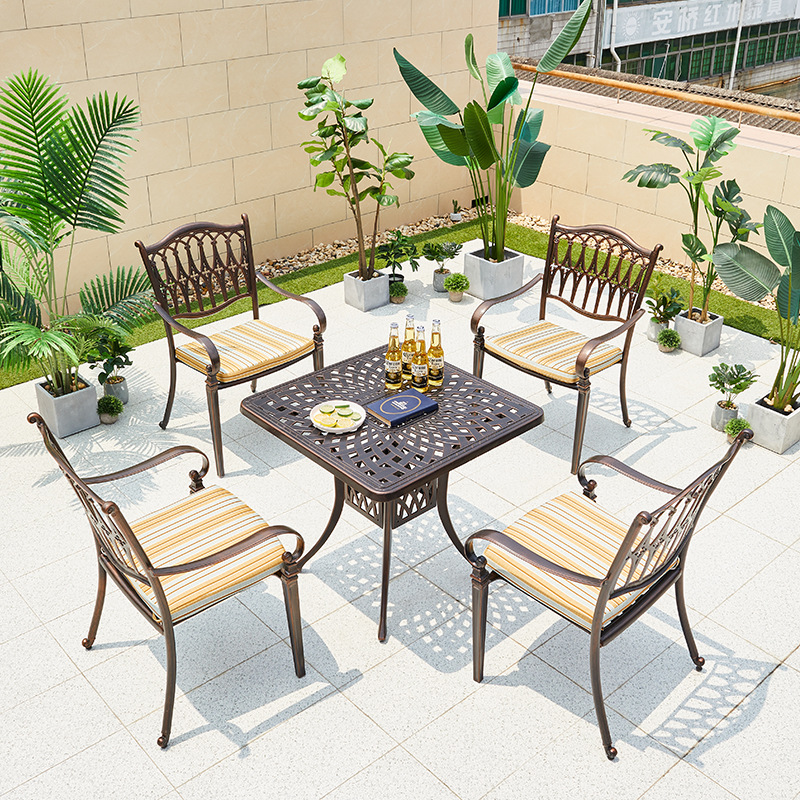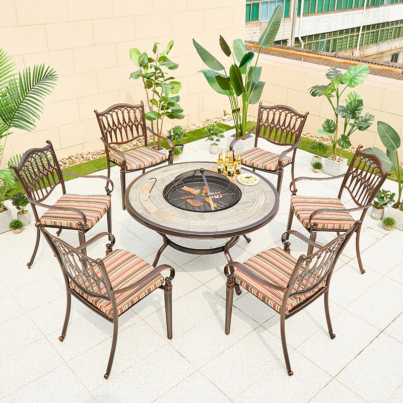야외 바베큐 테이블 빌라 안뜰 테이블 가정용 바베큐 테이블 빌라 캐스트 알루미늄 테이블과 의자 발코니 야외 식탁 조합스토어 가기