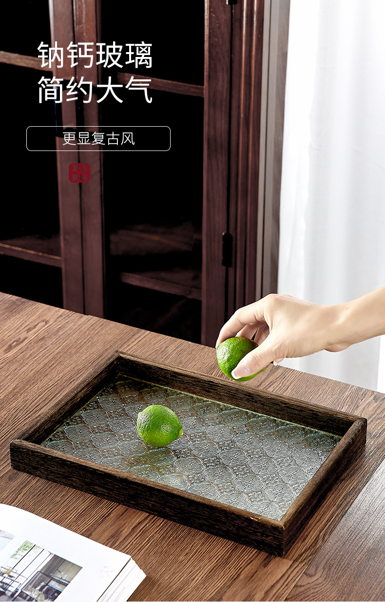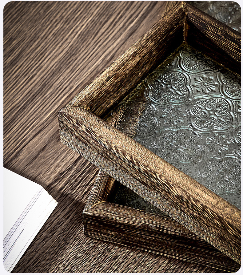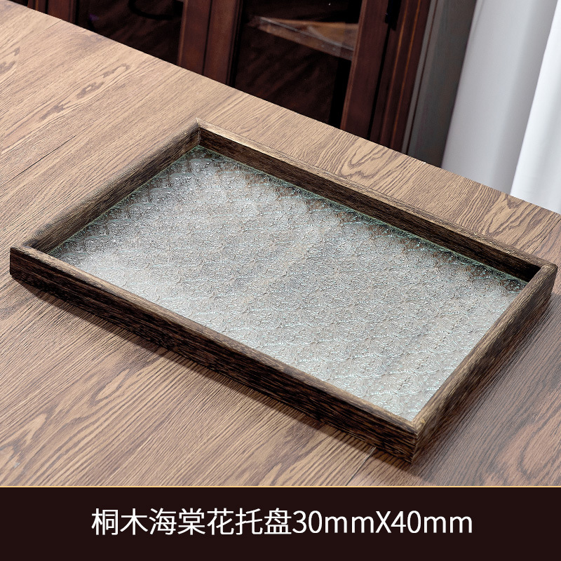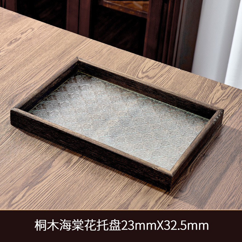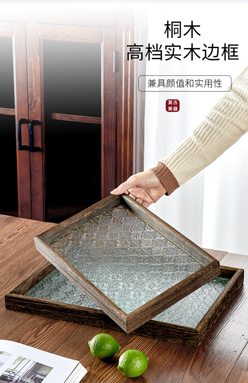 빈티지 베고니아 꽃 유리 트레이 가정용 직사각형 퉁 우드 단단한 나무 작은 티 트레이 컵 저장 과일 디스펜서