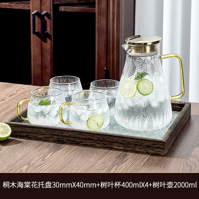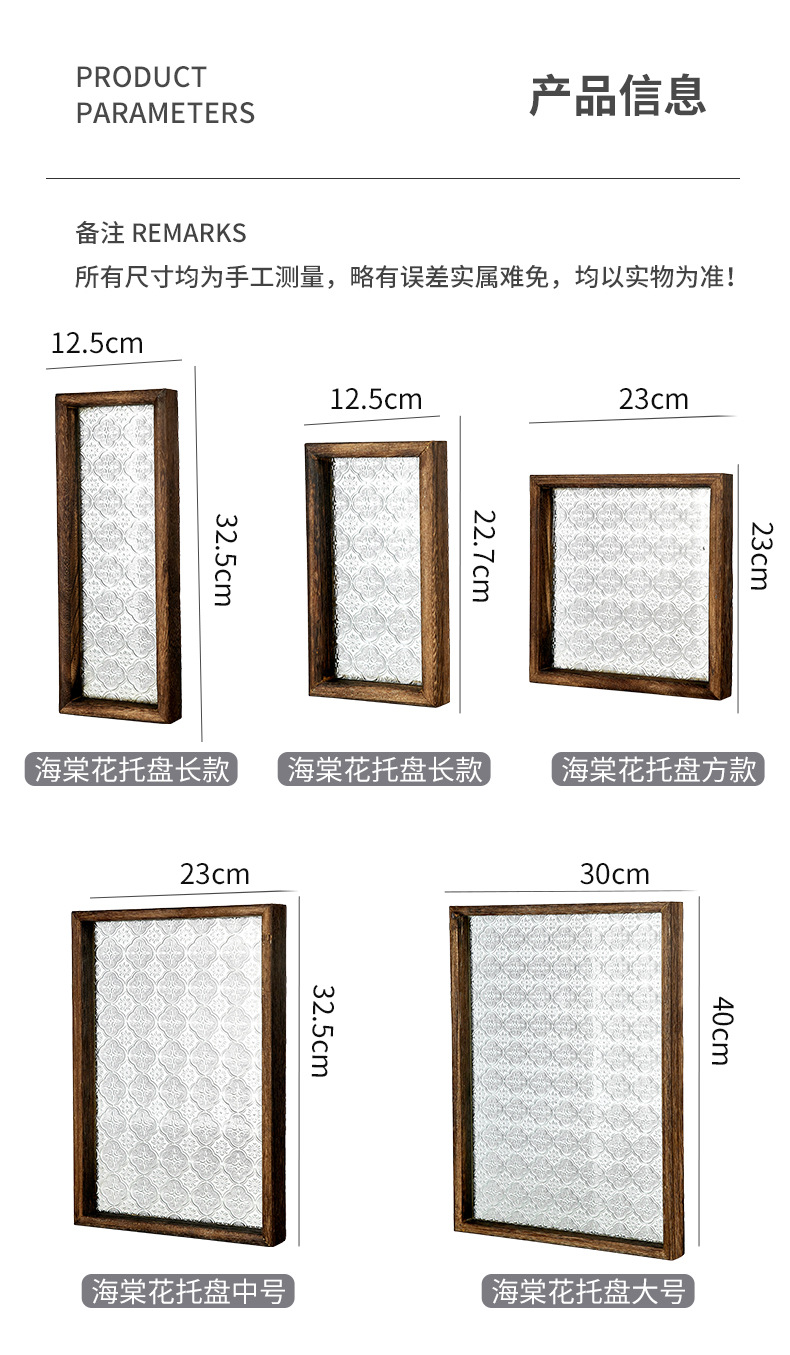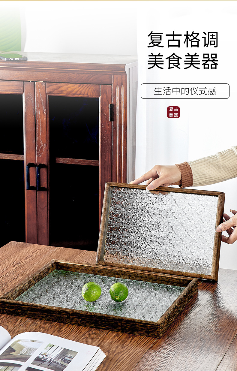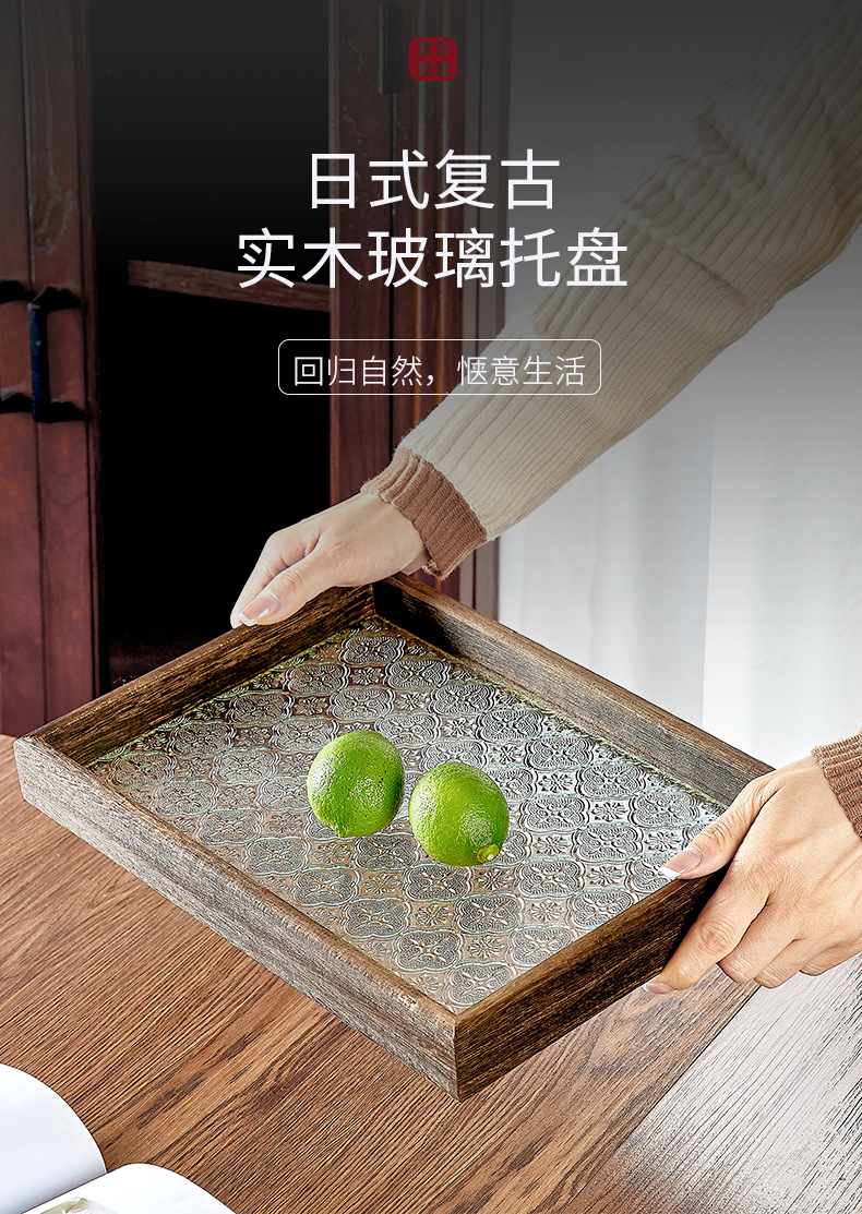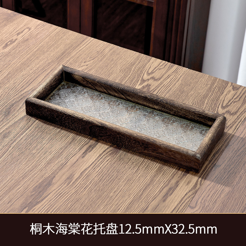 빈티지 베고니아 꽃 유리 트레이 가정용 직사각형 퉁 우드 단단한 나무 작은 티 트레이 컵 저장 과일 디스펜서