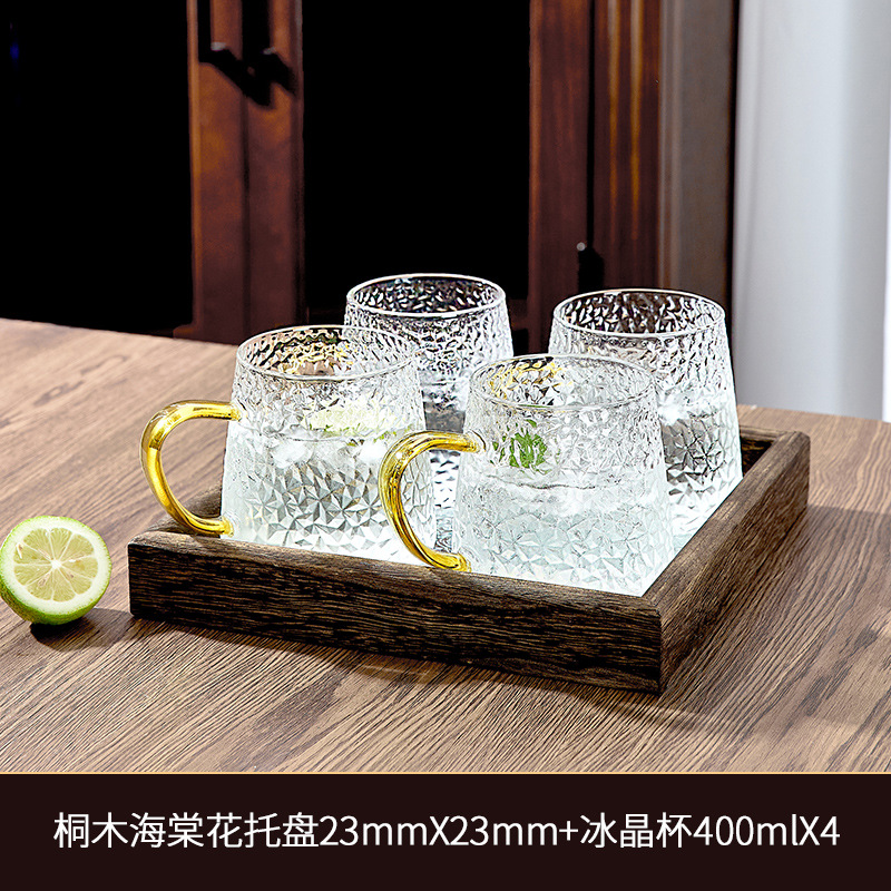 • 버튼 우드 베고니아 플라워 트레이 23*23 + 아이스 크리스탈 컵 4