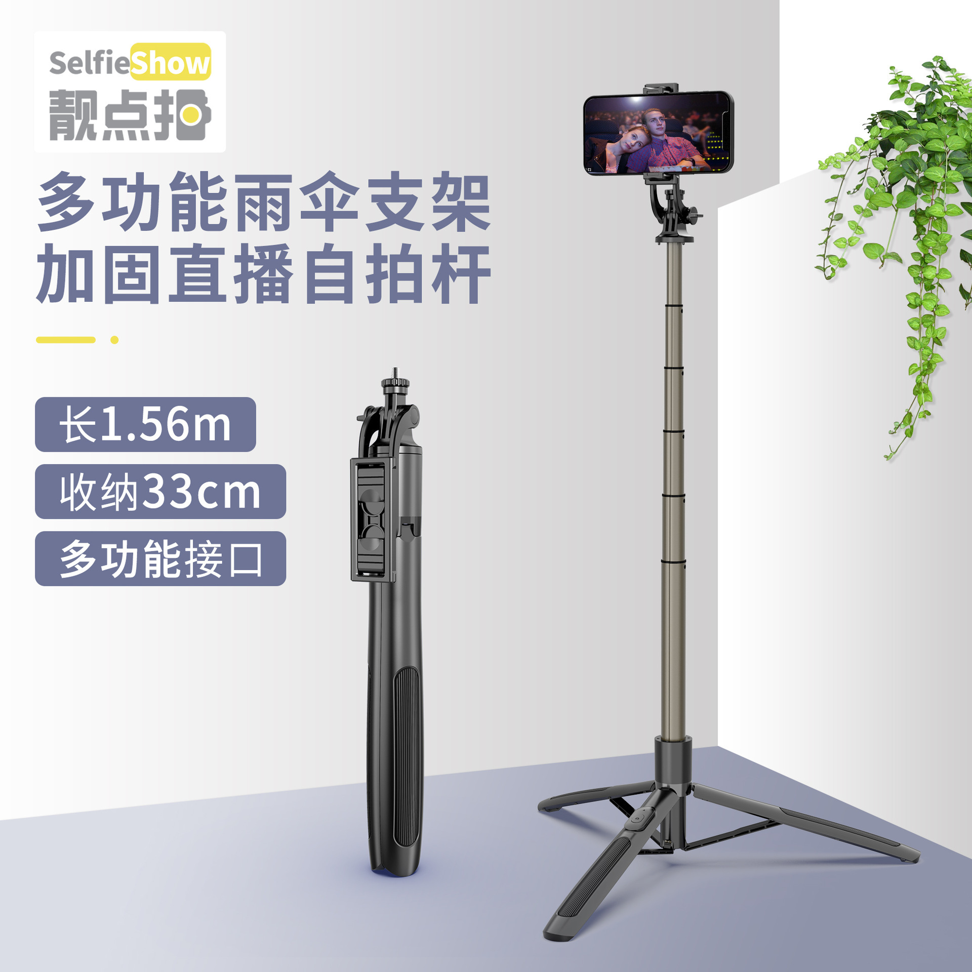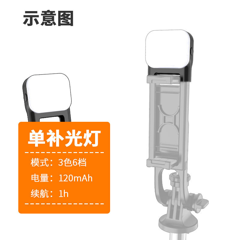 1. Optional supplementary light + 6-gear (three-color temperature) 2.1058mm extended rod 3.Reinforcement tripod + Bluetooth self-timer; 4.360-degree rotation supports horizontal and vertical beat; 5. Compatible with Android and iOS.
