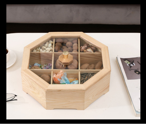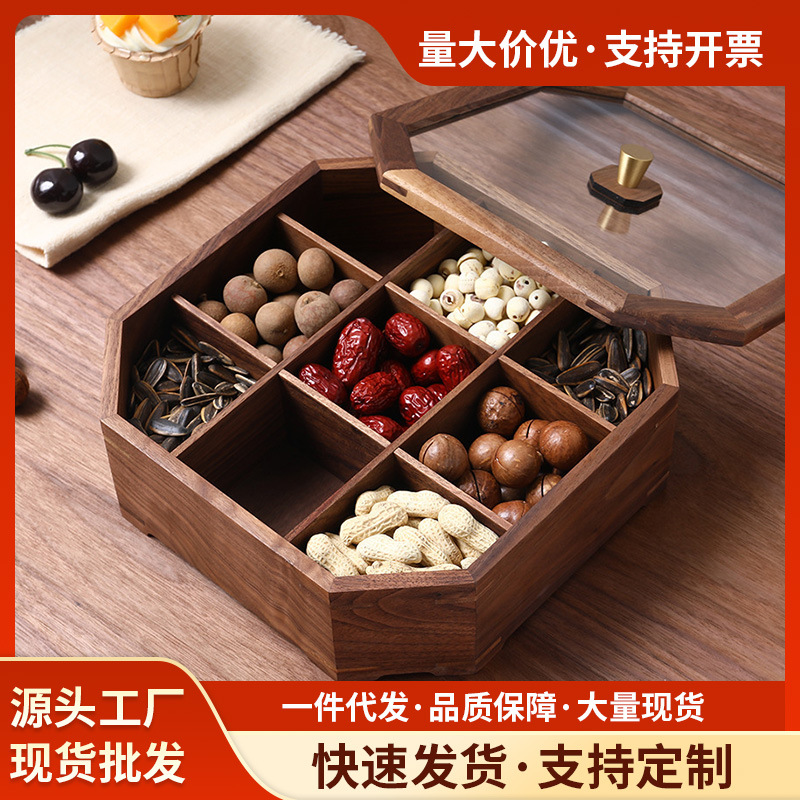 새해 단단한 나무 말린 과일 상자 뚜껑 말린 과일 접시 새로운 중국 나무 과일 상자 결혼식 매일 검은 호두 상자스토어 가기